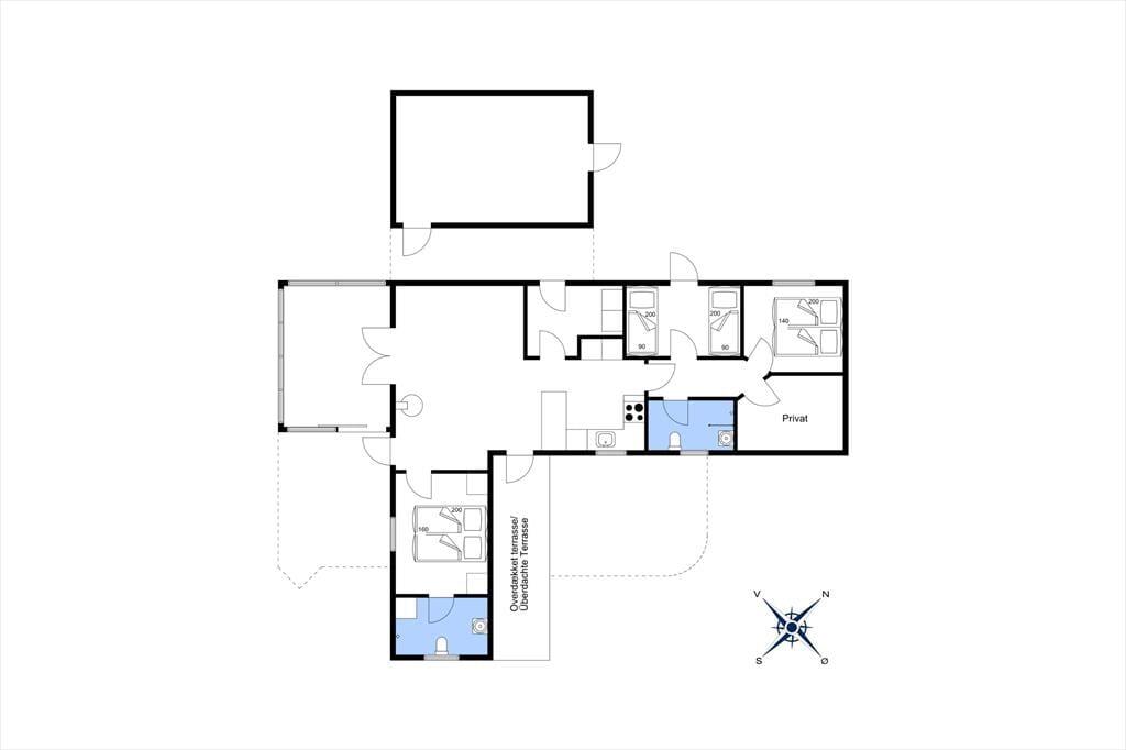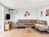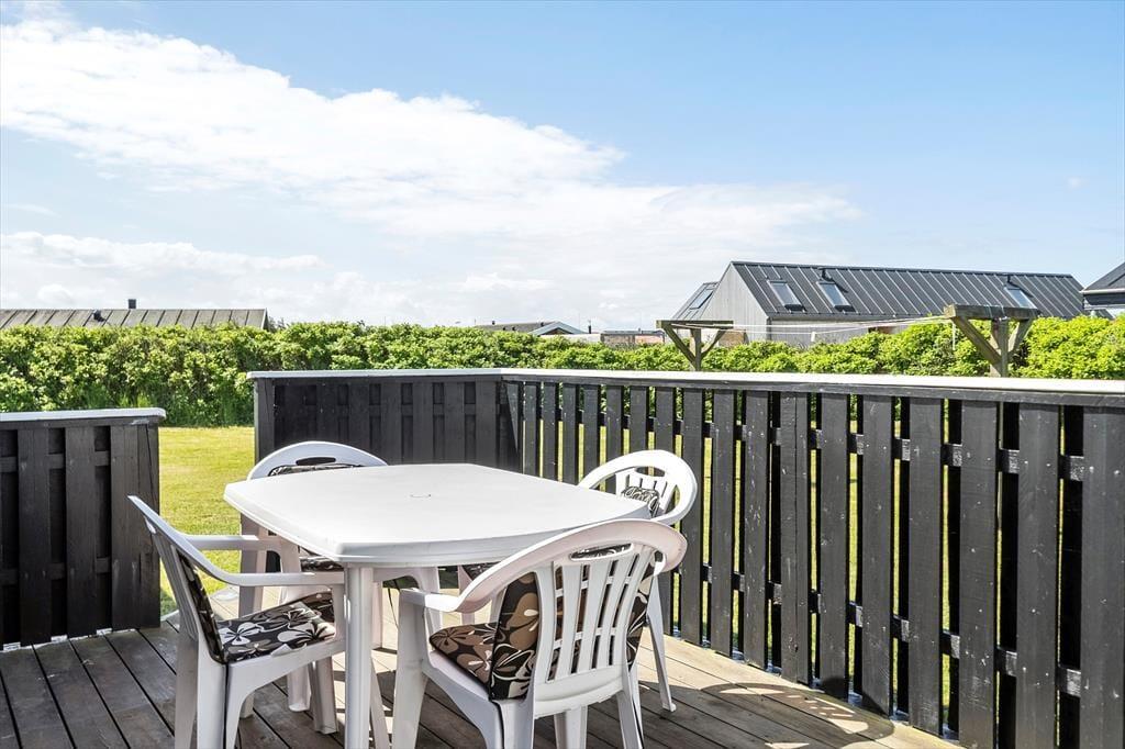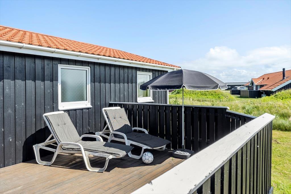 Udenfor finder du flere skønne terrasser, som giver dig mulighed for at finde både sol og skygge hele dagen lang. Du kan nyde morgenkaffen i den milde morgenluft, og når solen begynder at gå ned, er det tid til at tænde op i grillen og lave en hyggelig middag under åben himmel. Den omkringliggende natur giver en ro, som gør det nemt at finde fred og bruge ferien til at koble helt af. På de lange sommerdage er terrasserne det perfekte sted at samle familien og nyde de varme aftener sammen.