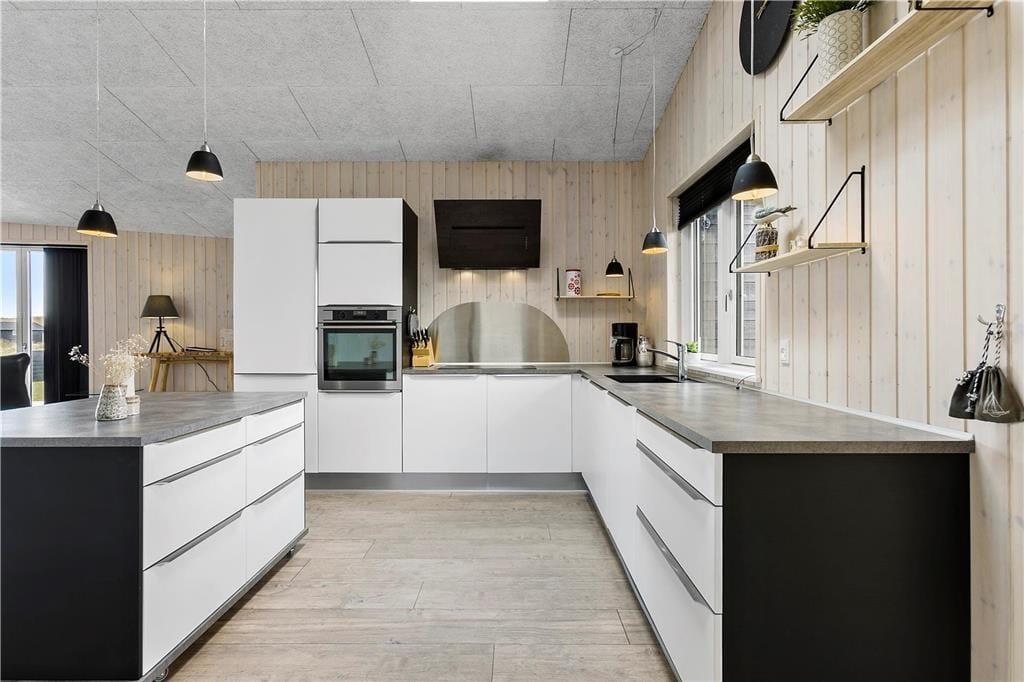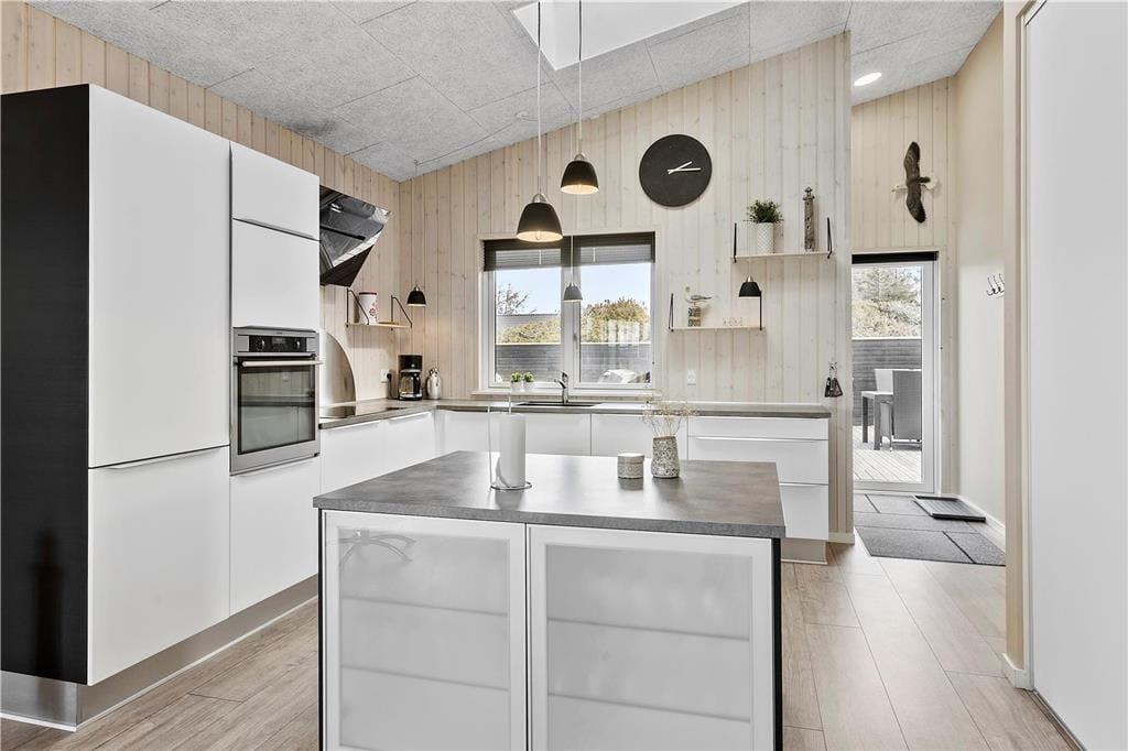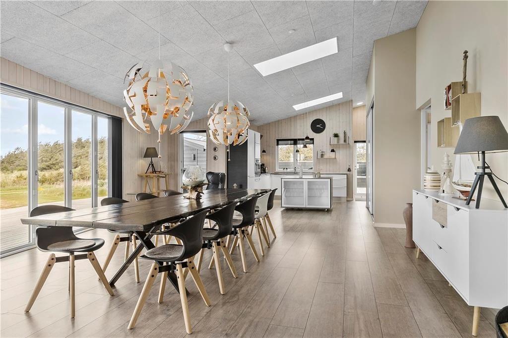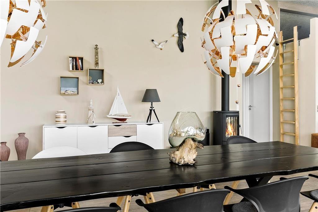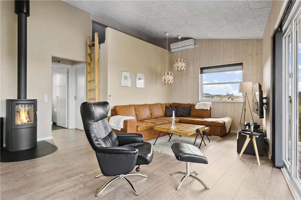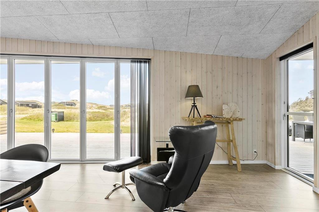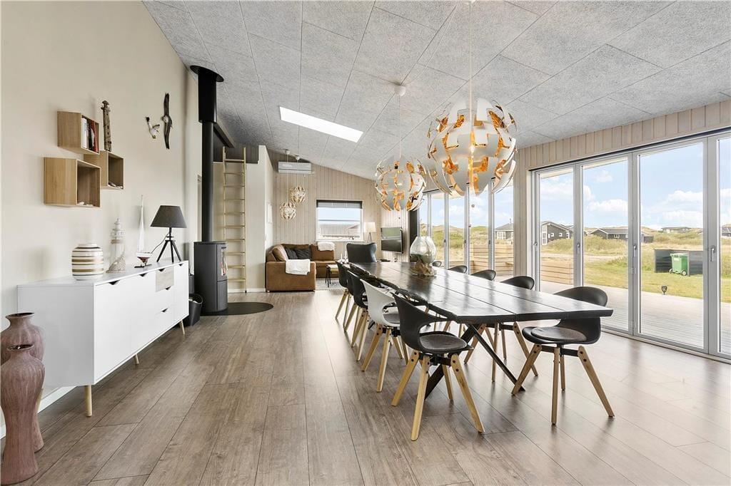 Sommerhuset er opført 2016 i de bedste materialer og indrettet i den højeste kvalitet. Arkitekturen er nytænkende og moderne med vinkler og en værelses- og badeafdeling langs sydsiden, mens det åbne køkken og opholdsrummet ligger i åben forbindelse og følger nordsiden af bygningen. Denne del af huset har loft til kip og store vinduespartier, så det skønne Vesterhavslys trænger helt ind og sammen med brændeovnen skaber en hyggelig stemning. Med tre værelser, en hems med to madrasser og to badeværelser med brusekabiner, kan man være op til seks personer i sommerhuset ad gangen, og det egner sig dermed både til en familieferie og til et ophold for to eller tre par, der gerne vil opleve denne del af Nordjylland i hinandens selskab. Sommerhuset har en del moderne udstyr, som vil gøre enhver ferie her til en leg, og en god mulighed for at få lidt kvalitetstid med dem man holder mest af: trådløst internet, parabol, varmepumpe og gode hårde hvidevarer; husk blot at medbringe pc eller tablet hjemmefra, så vil det også være nemt at søge oplysninger om områdets mange seværdigheder og attraktioner.