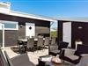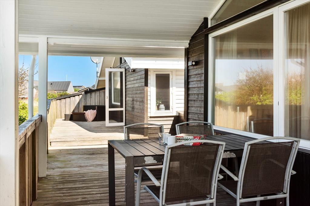 Med terrasser på nord, øst og sydsiderne af huset er der garanti for mange dejlige timer udendørs. En stor del af terrasserne er aflukkede, så her er trygt for børnene. På sydsiden er en overdækket del, her er især skønt om aftenen, når duggen falder på. Til børnene er her både sandkasse og gynge og masser af plads at boltre sig på.