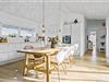 Der er kælet for alle detaljer i dette hus, som er opført i en enkel og tidløs arkitektur med rolige flader og store vinduespartier. Indenfor er der en utroligt lys og venlig atmosfære, som skaber gode rammer om ferieturens hyggelige samvær. Det kan I blandt andet se frem til at nyde i det store køkken-alrum, der tilbyder god plads til de kulinariske udfoldelser – og et stort spisebord til at servere dem på. Mellem alrum og stue er der en muret dobbeltsidet pejseindsats, som sender varme og hygge til begge sider – en helt unik detalje, der gør det til en særlig oplevelse at sidde i sofaen, når aftenen er faldet på. I huset er der endvidere tre soverum med dobbeltseng samt en sovesofa til to personer. Endelig er der to badeværelser og et bryggers.