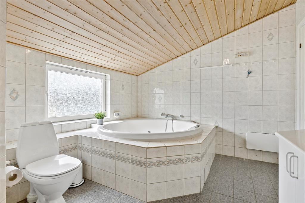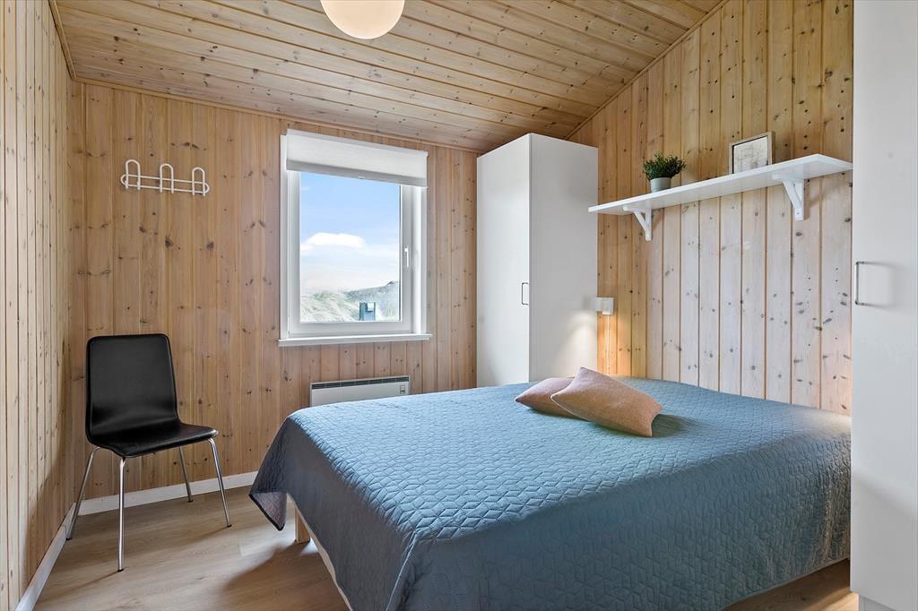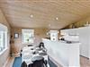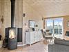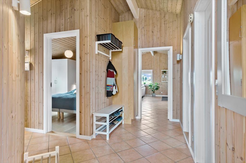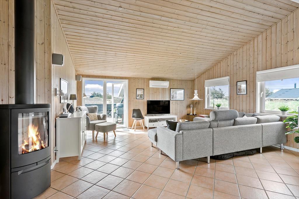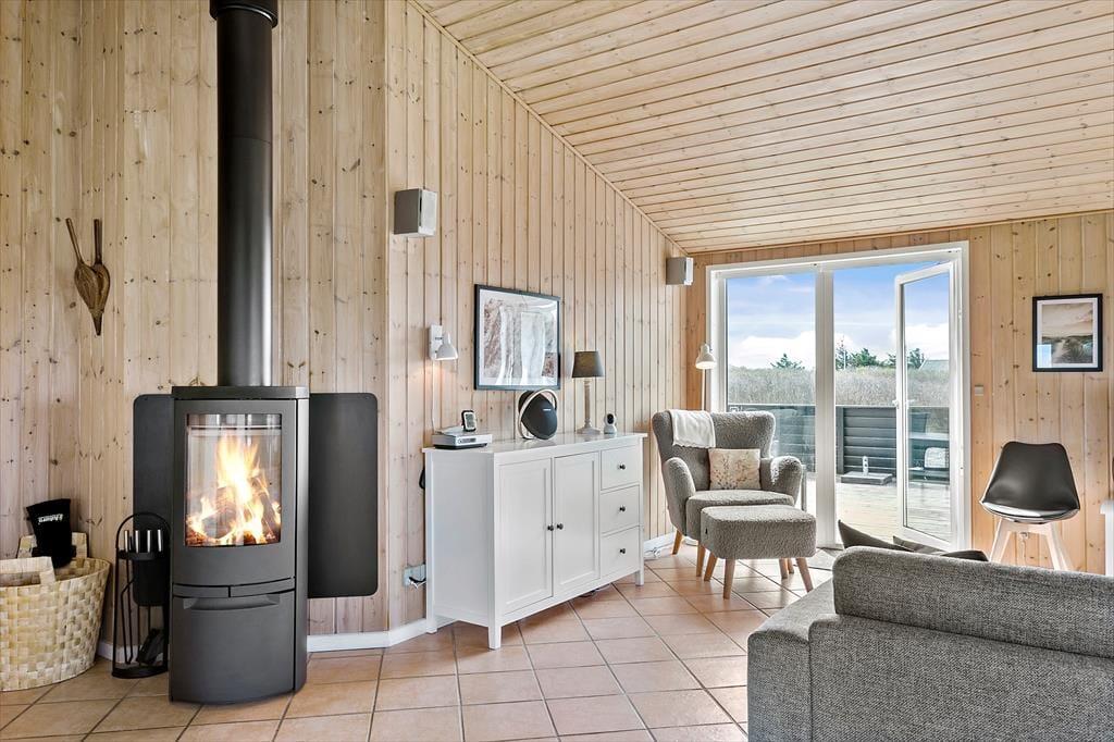 Sommerhuset er indrettet med gode kvalitetsmøbler og har en gennemgående stil og et farvevalg som præger huset positivt. Her er god plads og huset egner sig godt til at hele familien kan tilbringe noget kvalitetstid sammen. Fra køkkenet er der en halvmur til spisepladsen og den rummelige opholdsstue med loft til kip og gennemgående klinkegulv med en behagelig gulvvarme – her er desuden også mulighed for at varme op med varmepumpen eller lade hyggen sprede sig fra brændeovnen. Huset råder over to flotte badeværelser, hvoraf det ene er ekstra rummeligt med spabad og sauna. Huset er beregnet til 8 personer som kan fordele sig på de fire soveværelser en hems med 2 madrasser på gulvet – et sikkert hit for de yngste medlemmer af familien