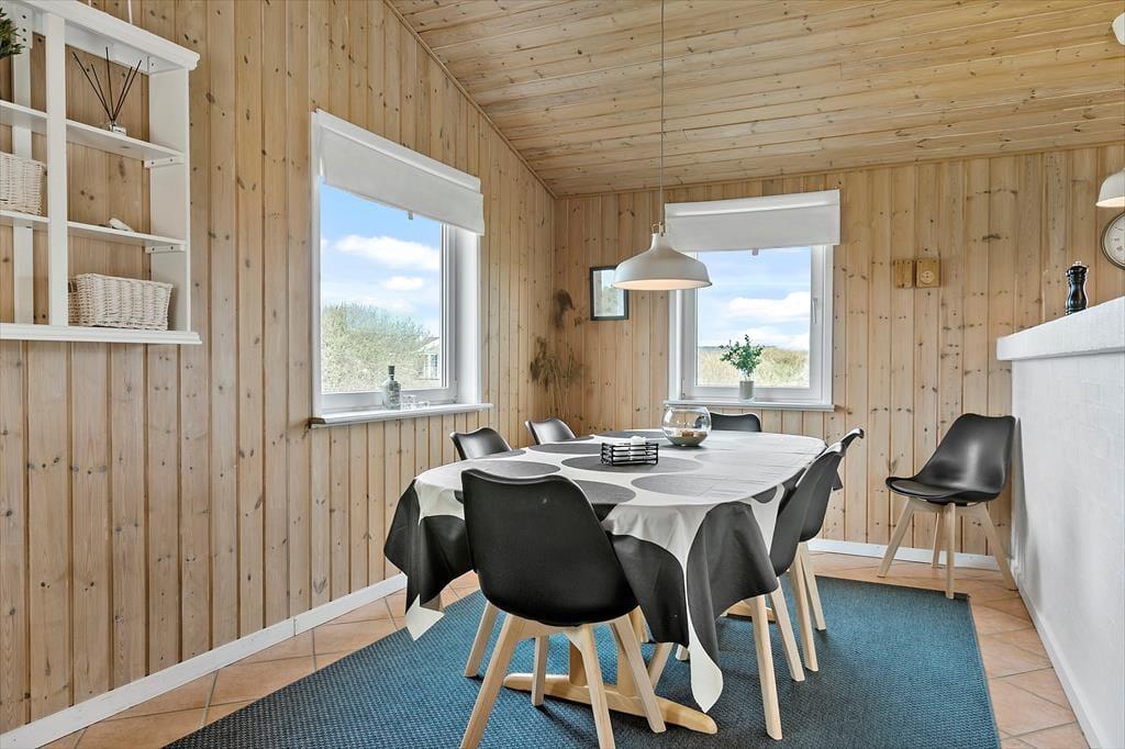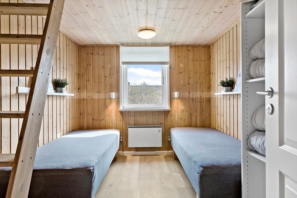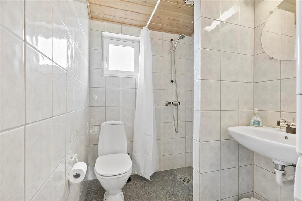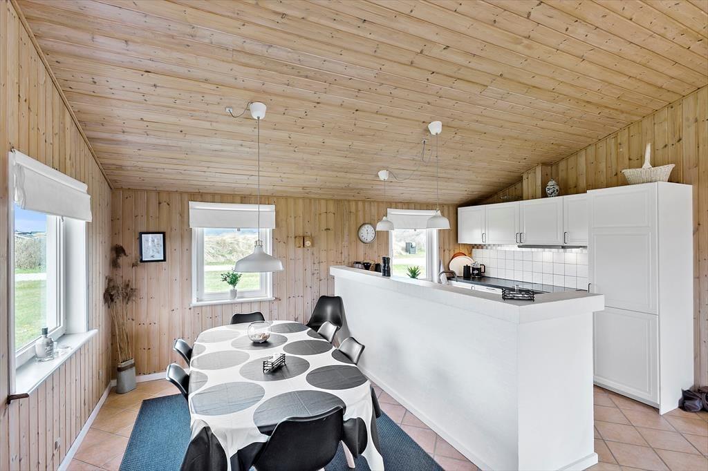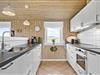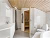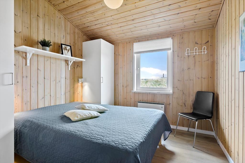 Sommerhuset er indrettet med gode kvalitetsmøbler og har en gennemgående stil og et farvevalg som præger huset positivt. Her er god plads og huset egner sig godt til at hele familien kan tilbringe noget kvalitetstid sammen. Fra køkkenet er der en halvmur til spisepladsen og den rummelige opholdsstue med loft til kip og gennemgående klinkegulv med en behagelig gulvvarme – her er desuden også mulighed for at varme op med varmepumpen eller lade hyggen sprede sig fra brændeovnen. Huset råder over to flotte badeværelser, hvoraf det ene er ekstra rummeligt med spabad og sauna. Huset er beregnet til 8 personer som kan fordele sig på de fire soveværelser en hems med 2 madrasser på gulvet – et sikkert hit for de yngste medlemmer af familien