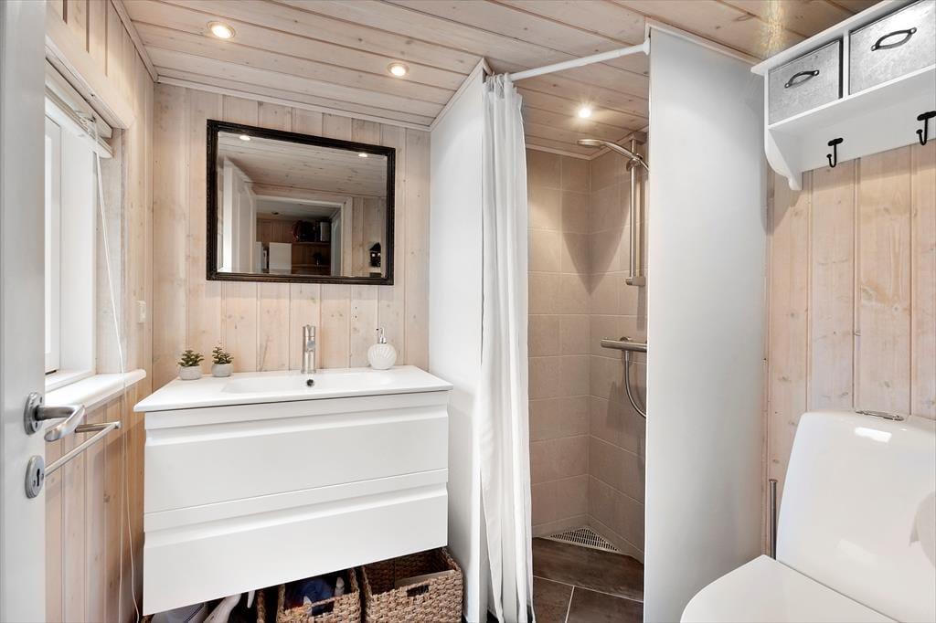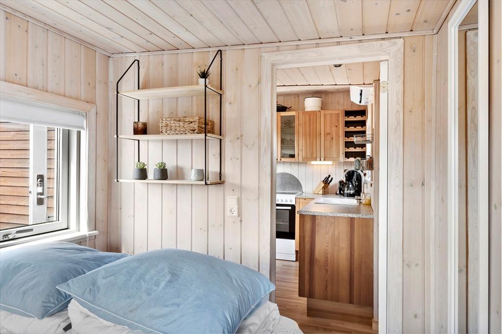 Indenfor byder sommerhuset på en lys og indbydende indretning, hvor den hyggelige atmosfære virkelig kan mærkes. Det åbne køkken er ideelt til, at du kan tilberede dine yndlingsmåltider, mens du stadig er en del af samtalen i spisestuen og stuen. Her kan du nyde samværet med dem, du holder af, mens roen sænker sig over hele huset. Sommerhuset rummer to gode værelser og et badeværelse, som indbyder til afslapning og komfort. Bemærk, at der ikke er tv-kanaler i huset, men et tv og dvd-afspiller er tilgængelige, hvis du har lyst til at se en god film om aftenen.