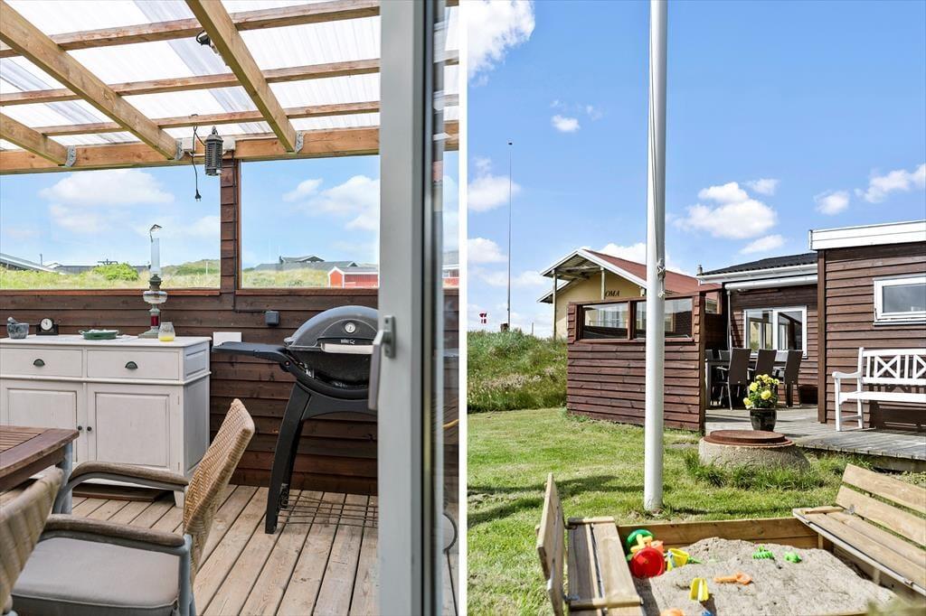 Det hyggelige sommerhus har en overdækket terrasse, som giver mulighed for at sidde udenfor, selv når vejret er lidt mere ustadigt. På terrassen kan du nyde morgenkaffen, læse en god bog eller bare tage en pause og lytte til fuglene, der kvidrer i haven. Sommerhusets have er også et ideelt sted at tilbringe tid udendørs, hvor du kan finde ro og nyde de naturskønne omgivelser. Her er der rig mulighed for både afslapning og leg – perfekt til både børn og voksne.
