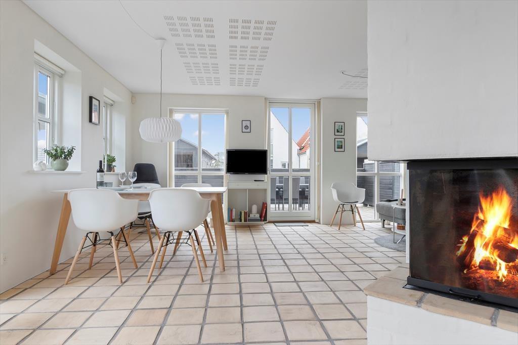 Dette flotte, toetagers sommerhus ligger i Josefines Have, et kvarter med både by- og fritidshuse tegnet af arkitekten Jørgen Ussing. Dette dejlige sommerhus er oplagt til en hyggelig byferie, hvad enten man er en familie eller et eller to par afsted sammen. Husets stueplan indeholder et moderne køkken med alt i hårde-hvidevarer, et dejligt opholdsrum med spiseplads, sofagruppe og en fantastisk flot brændeovn midt i rummet som kan nydes fra flere vinkler. Alle soveværelser er beliggende på den øverste etage og her er desuden et flot badeværelse med et lille spabad som er beregnet til max. to personer. Generelt velholdt, lyst og moderne indrettet. Medbring gerne tablets hjemmefra, så kan man benytte sig af det trådløse netværk, der helt sikkert vil falde i god jord hos børn og teenagere.