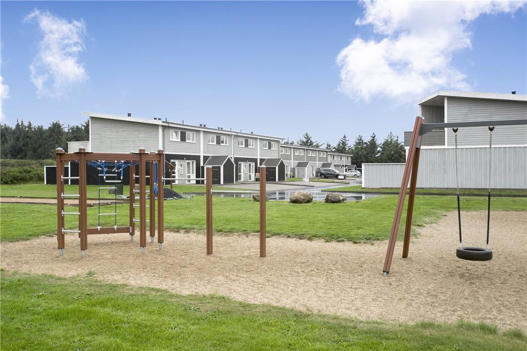 Tæt ved lejligheden ligger en stor og flot legeplads, som vil skabe lykke hos både små og lidt større børn. For de golfinteresserede er der lige ved siden af stor Pay & Play golfbane. Hele området er udlagt med grønne områder og mulighed for gå ture. På den skønne balkon eller den store terrasse er der rig mulighed for at nyde solnedgangen i horisonten mens man lytter til lyden af det brusende Vesterhav.