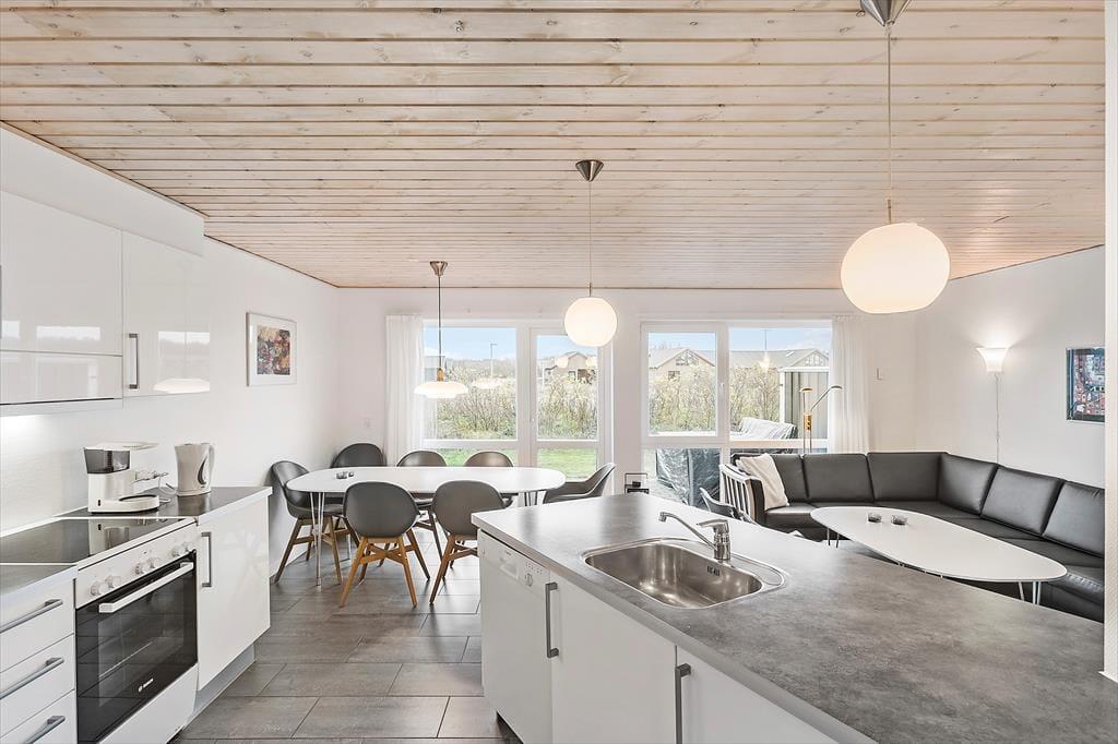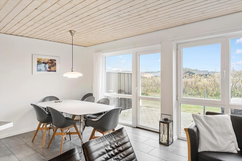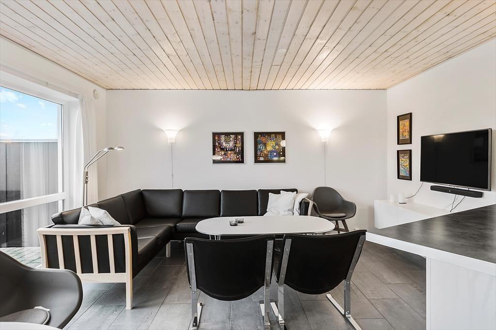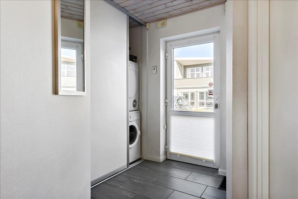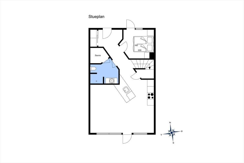 Ferielejligheden, der hører til Løkken Feriepark Nordenlys, er i to plan med god plads til hele familien. Stueetagen er indrettet med stort åbent køkken-alrum med spiseplads og opholdsrum samt et soveværelse og badeværelse med sauna. I det øverste plan forefindes et rummeligt badeværelse med spabad, som kan benyttes til afslapning efter en dejlig sommerdag på stranden og desuden yderligere tre soveværelser. Fra stuen er der udgang til terrassen og fra to af værelserne på 1. sal er der adgang til en dejlig altan, hvorfra solen og udsigten kan nydes.