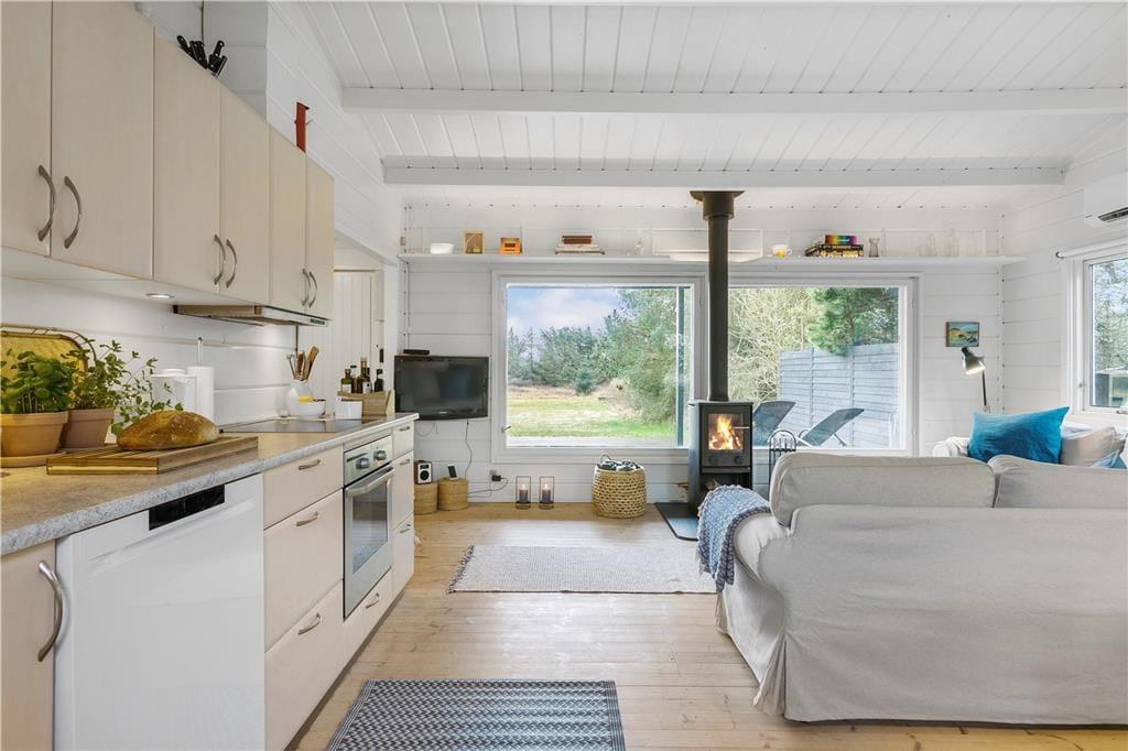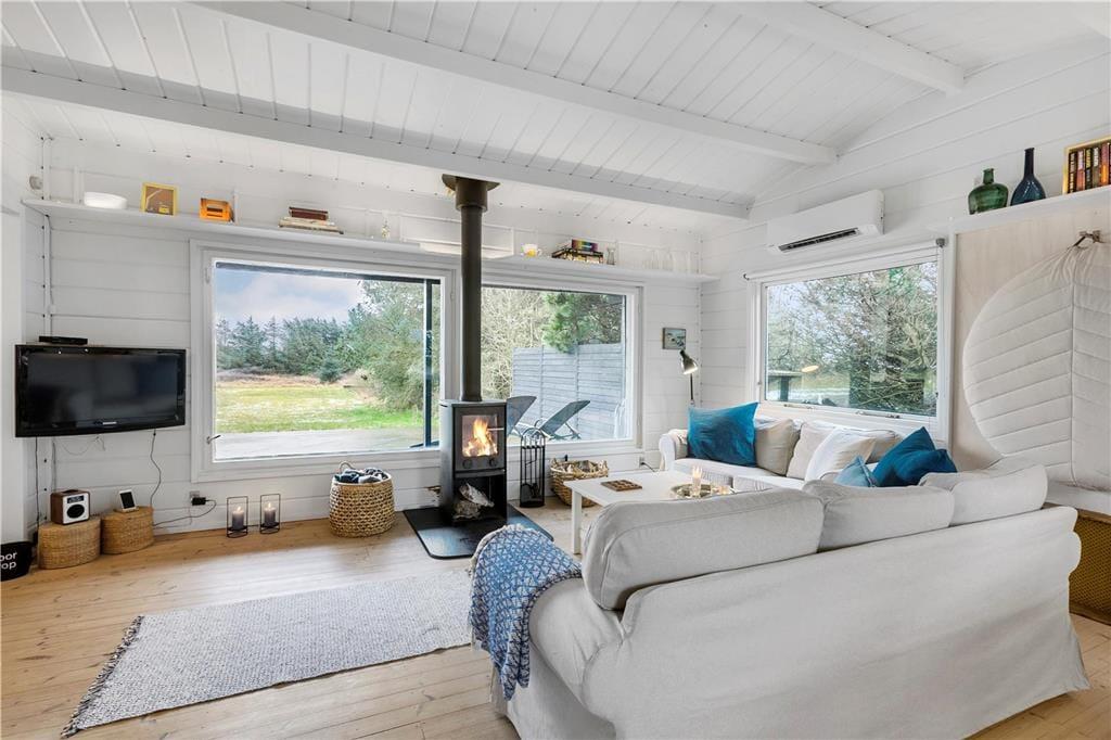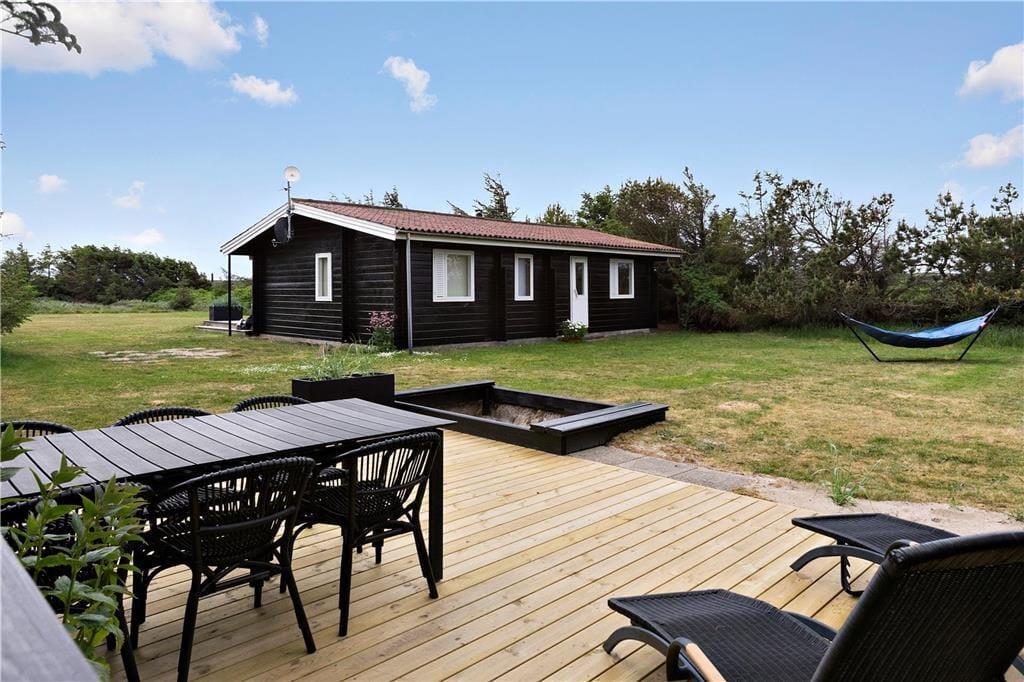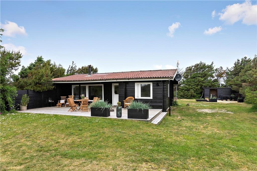 Feriefornemmelsen er helt i top her på Harald Jensens Vej nær Løkken. Dette velindrettede træsommerhus har nemlig en varm og venlig atmosfære inden døre, en solrig terrasse på den grønne grund og en attraktiv beliggenhed knap 400 meter fra Vesterhavet og den smukke sandstrand.