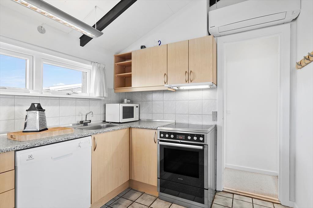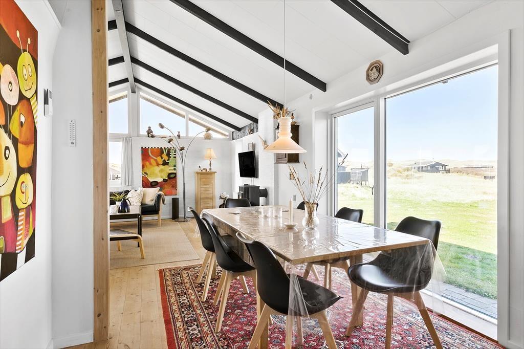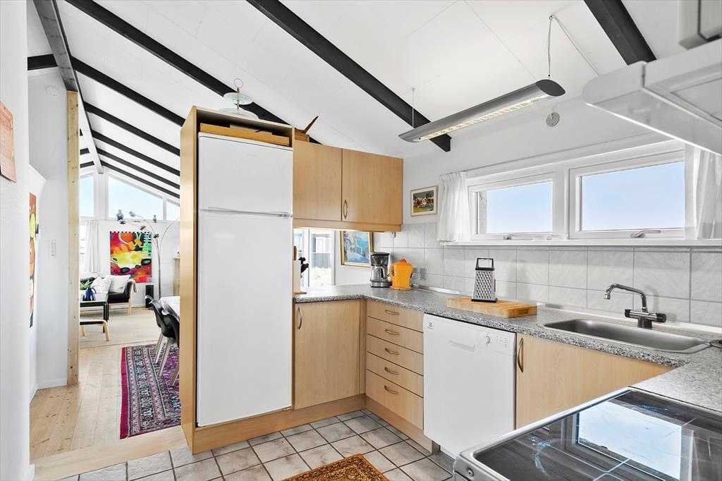 Sommerhuset ligger dejligt tilbagetrukket fra vejen og blot en kort gåtur fra Løkken Strand. En sti fører jer gennem det marehalmsklædte klitlandskab og helt ned på det hvide sand, hvor der er masser af plads til at løbe, lege og sole sig, inden I tager en dukkert i Vesterhavet. På stranden er det tilladt at køre i bil – faktisk helt til Rødhus, hvis I vil tage hele turen langs med kysten. Der er nu god grund til at blive tæt på sommerhuset og i Løkken, hvis bymidte ligger cirka 2,5 kilometer væk. Her kan I hygge jer med at shoppe i butikkerne og gå på restaurant – eller hvad med at køre gokart og prøve de andre sjove aktiviteter i Action House? Der er desuden golfbane i lokalområdet, og hvis I er lystfiskere, kan I fiske efter makrel, rødspætter og andre fisk fra Løkken Mole.