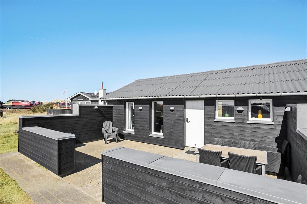 Rundt om sommerhuset er der flere terrasser at vælge imellem, så det er nemt at finde en opholdsplads med sol og læ. Den sydvendte terrasse er dog et oplagt valg, for den er ikke bare størst, men er også skærmet af mure til flere sider, så det nærmest føles som et ugeneret gårdmiljø.