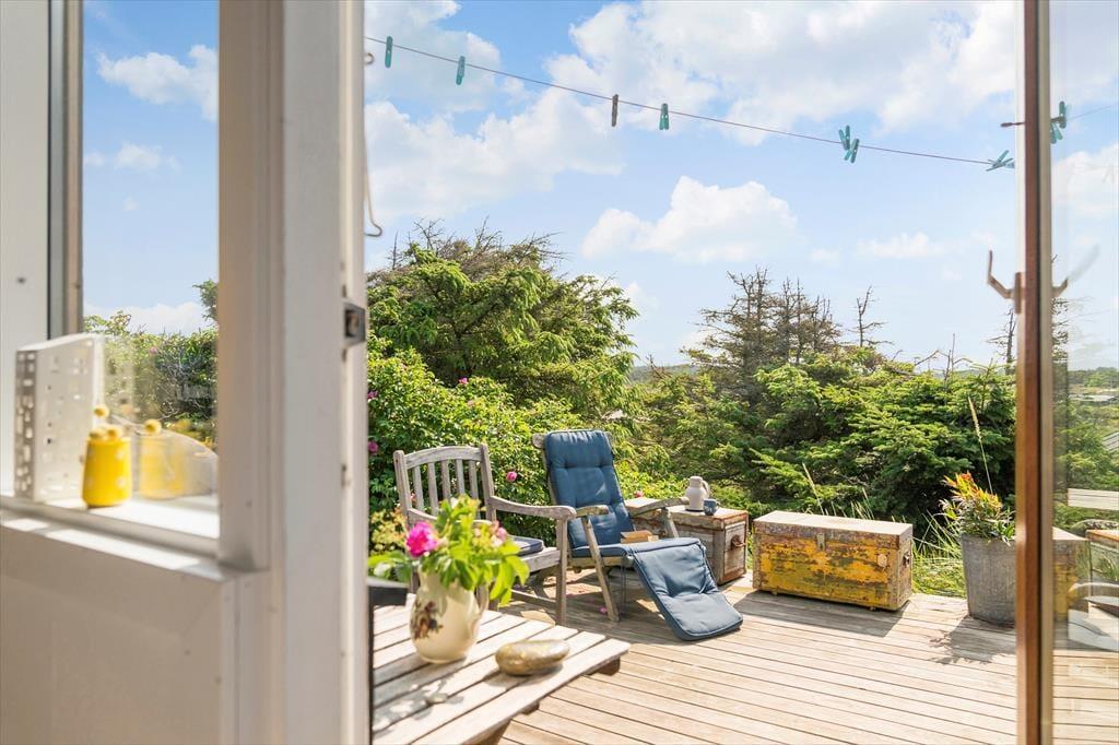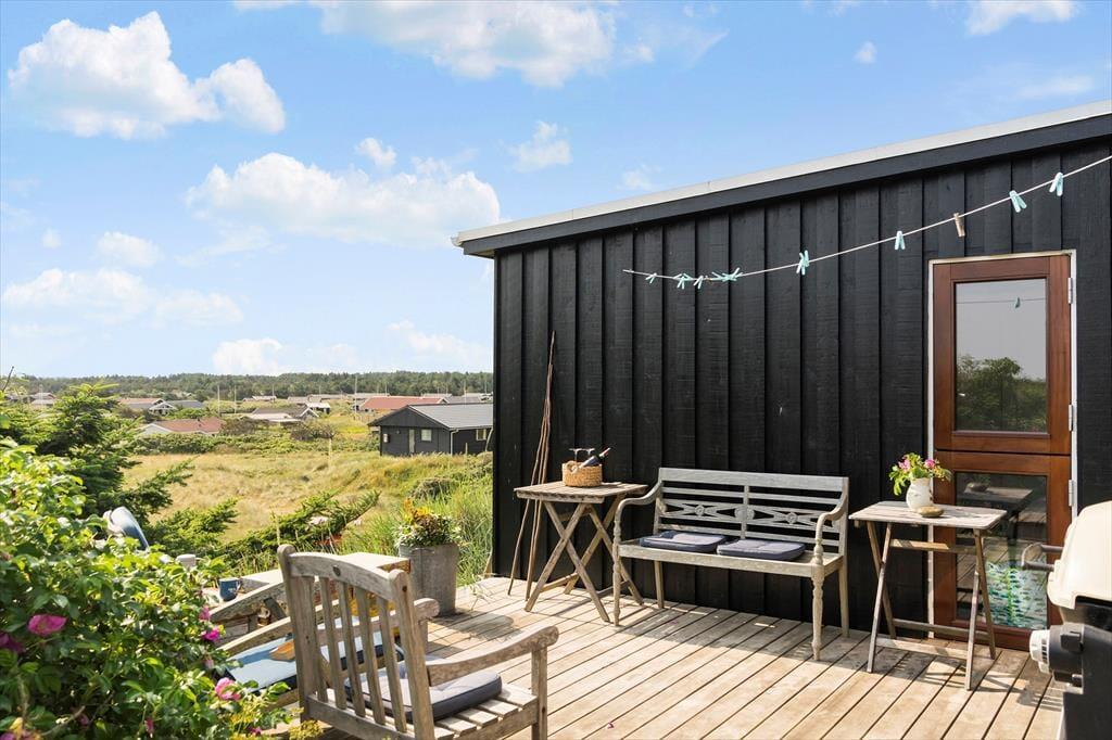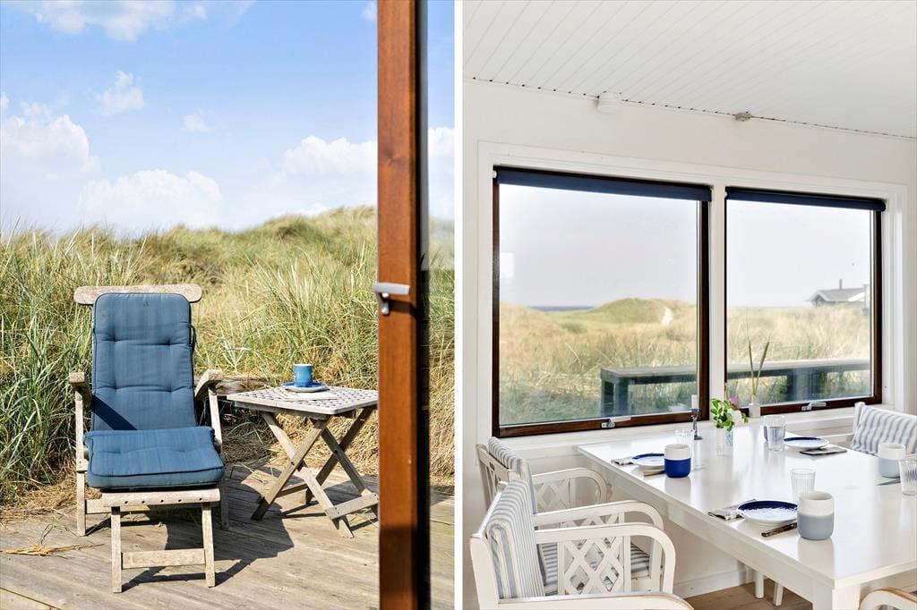 Sanserne stimuleres og feriefreden indfinder sig, når I tilbringer tiden ude på det skønne terrassemiljø, der smyger sig rundt om husets sider. En brise i marehalmen, solens varme og saltvandsduften blander sig med havudsigten – og så det kolde gys, når I smutter ned på stranden for at bade i Vesterhavets bølger.