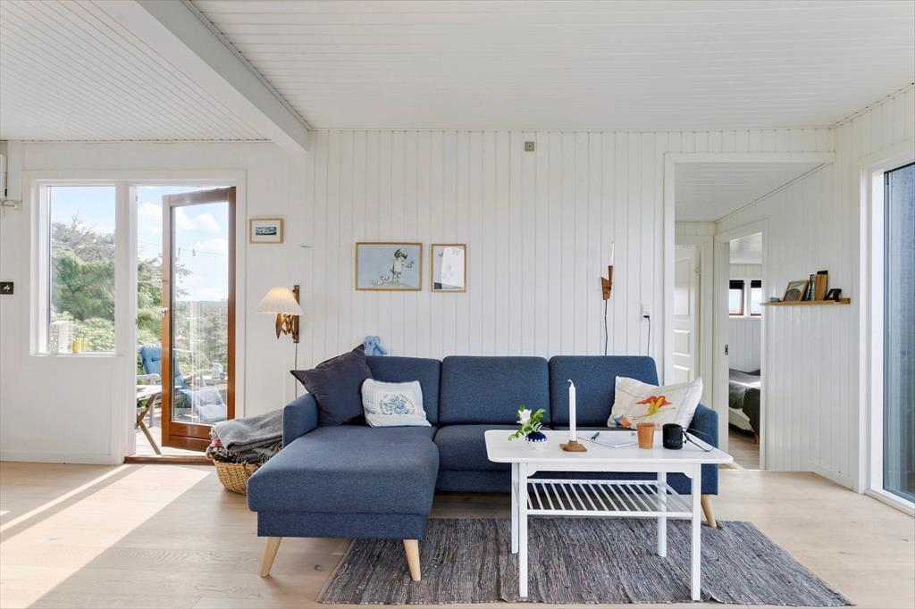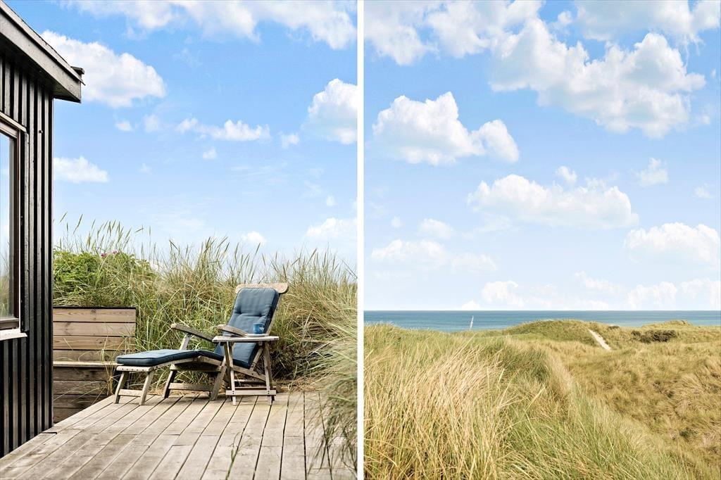 Smagfuld indretning, solrige terrasser og skøn udsigt over havet og kysten. Frisk havluft i lungerne og udsigt til bølgende marehalm og blå bølger. I bor i det smukkeste kystlandskab bare 150 meter fra Løkken Strand, når I holder ferie i dette stemningsfulde og smukt indrettede sommerhus.