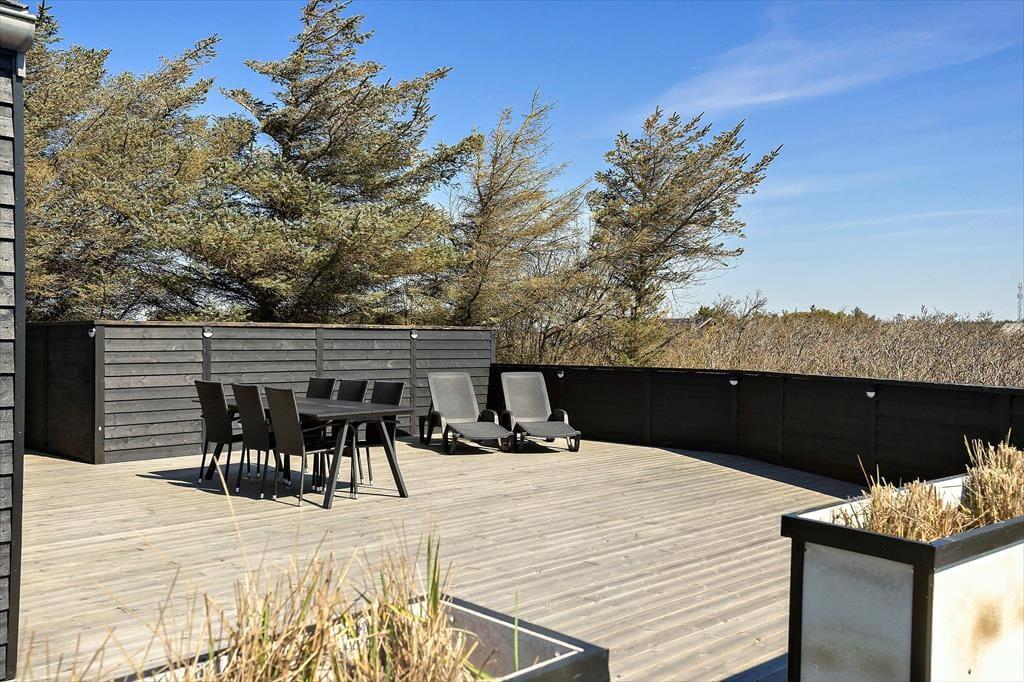 På solskinsdage er det oplagt at flytte driverlivet ud på den kæmpestore træterrasse, der breder sig rundt om sommerhuset. De to overdækkede områder er især gode, hvis I har brug for skygge eller ly ved aftenstide, når duggen falder, mens de åbne arealer er perfekte til en solbeskinnet siesta eller sommerfrokost. Uanset hvor I sidder, kan I nyde freden og naturomgivelserne, og trænger I til at komme op af havemøblerne, er der god plads til at lege og spille bold på den store græsplæne.
