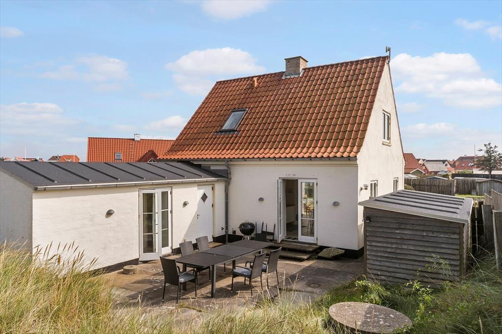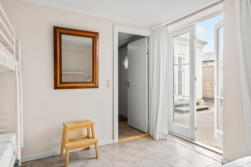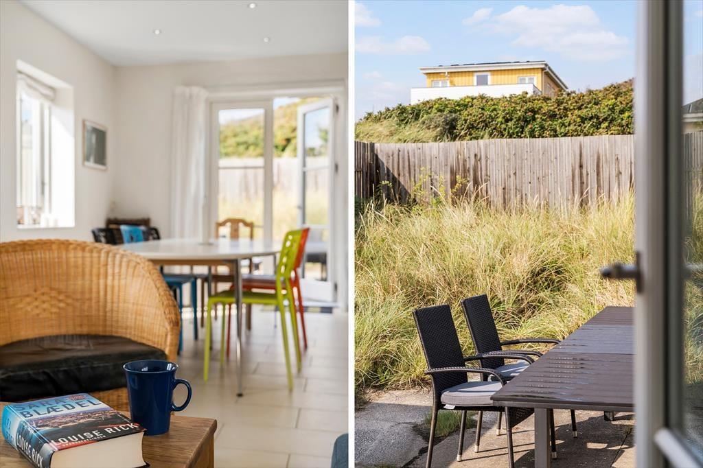 Fra stueplanets opholdsafdeling og soveværelser har I direkte adgang til et skønt gårdmiljø, der skærmes af plankeværk. Her kan I sidde dejligt ugeneret og nyde sommervejret på terrassen, mens I læser jeres medbragte feriekrimier eller køler jer af med en drink, mens grillkullene bliver klar inden aftensmaden.