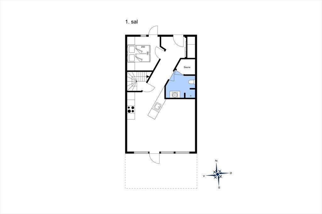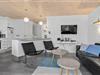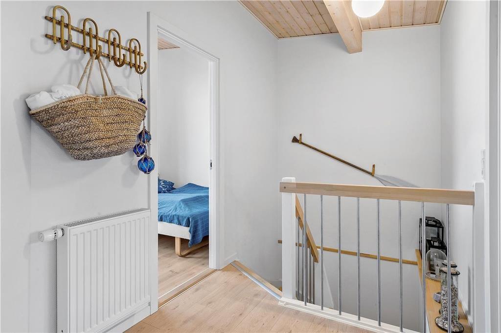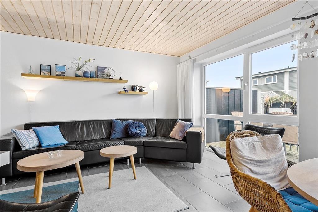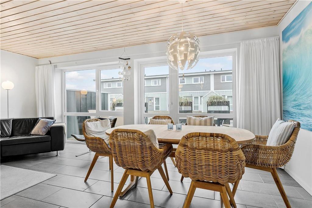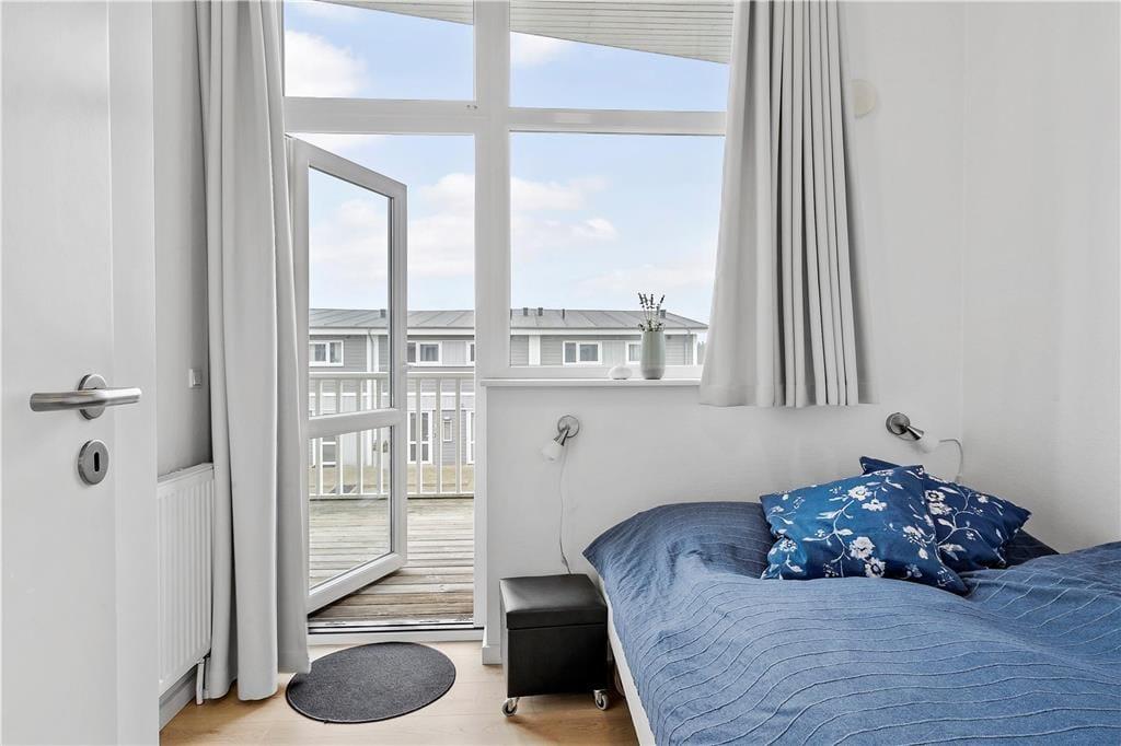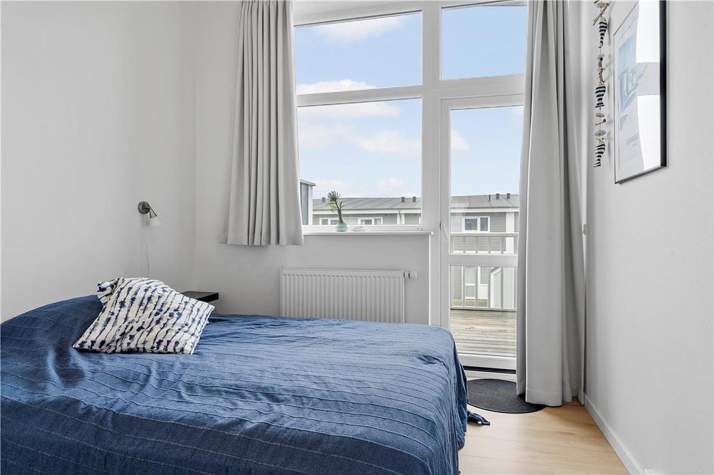 Ferielejlighedens 105 m2 breder sig over to etager, som begge er lyst og indbydende indrettet. Stilen er moderne med pænt møblement, rene linjer og store vinduespartier, der inviterer sollyset indenfor. I stueplan ligger køkken og stue forenet, så her er det oplagt at bruge tiden sammen – uanset om I hygger jer med at lave mad, spille spil eller se film på fladskærms-tv’et. Et soveværelse, et badeværelse og en entré med vaskefaciliteter ligger også i stueplan, mens førstesalen byder på endnu et badeværelse og yderligere tre soveværelser. Badeværelset i stueplan rummer en sauna og det andet et spabad, så der er lagt op til hyggelige wellness-stunder både oppe og nede.