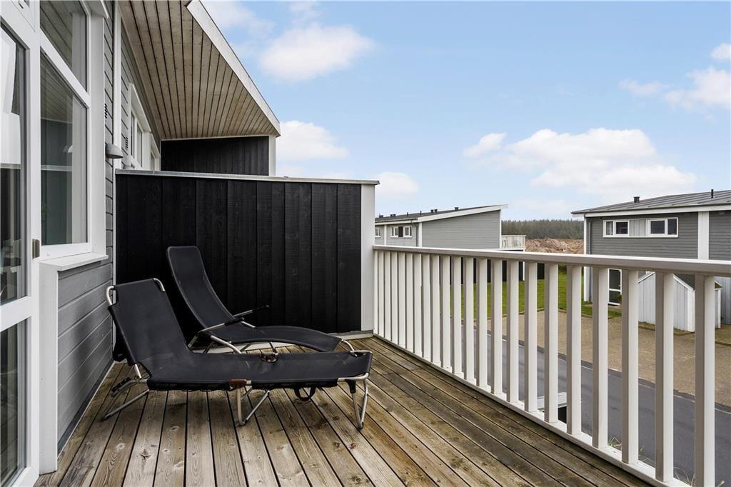 Fra to af førstesalens soveværelser har I direkte adgang til en stor altan. Den er sydvendt –præcis ligesom stueplanets terrasse, så begge steder kan I nyde det gode solskinsvejr og den afslappede atmosfære her i Feriepark Nordenlys. Foran ejendommen er der god plads til parkering, og lige i nærheden er der petanquebane, legeplads og dejlige grønne omgivelser.