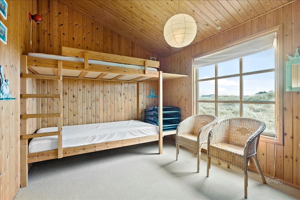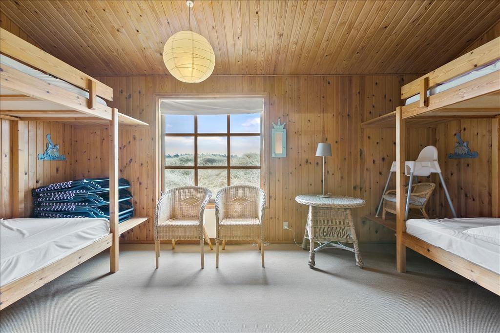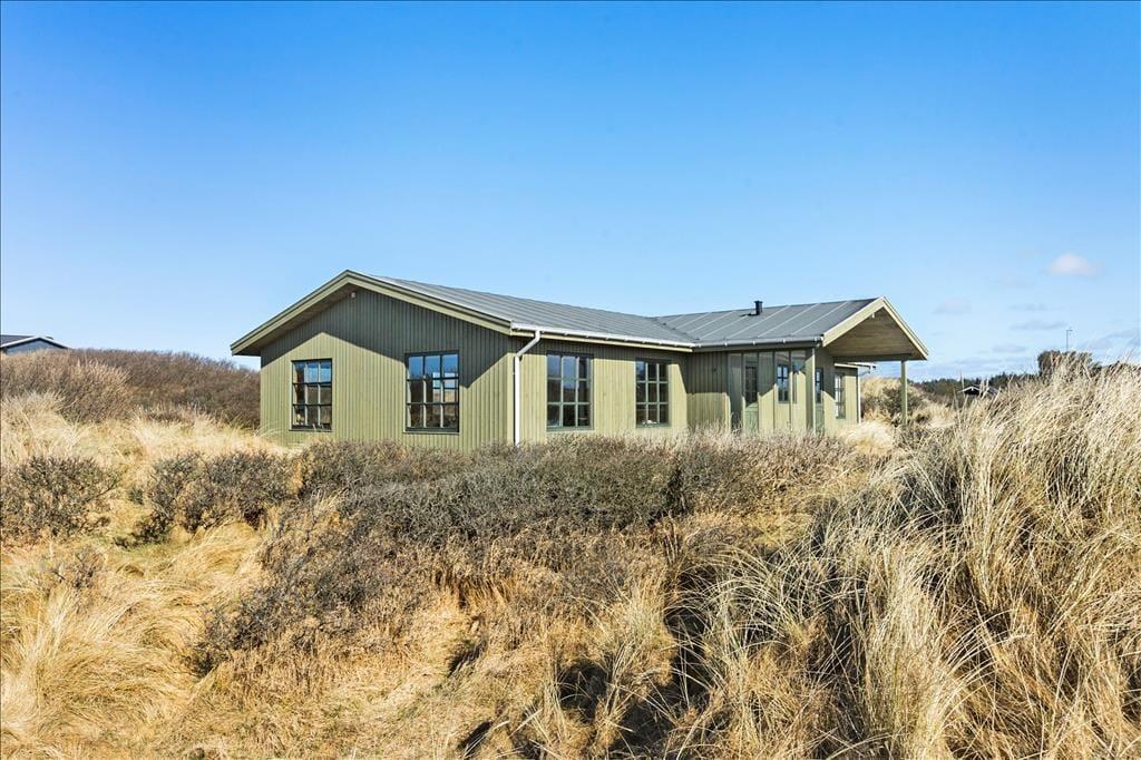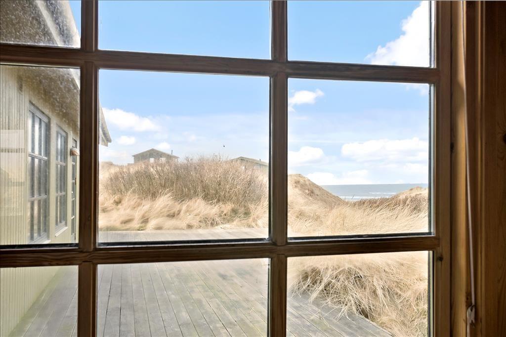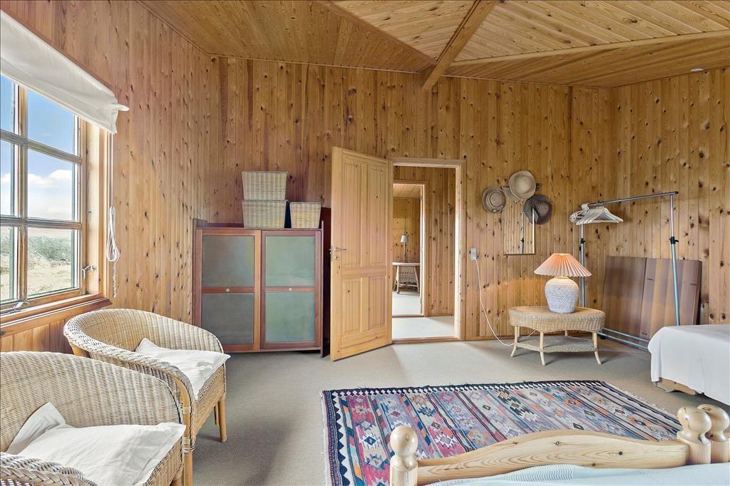 I får en smuk ramme om ferien, når den foregår i dette store og velholdte træsommerhus. Gennem vinduerne kan I nemlig kigge lige ud på bølgende marehalm og bløde klitter, og bare 100 meter væk venter Løkken Strand og Vesterhavet.