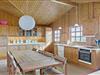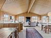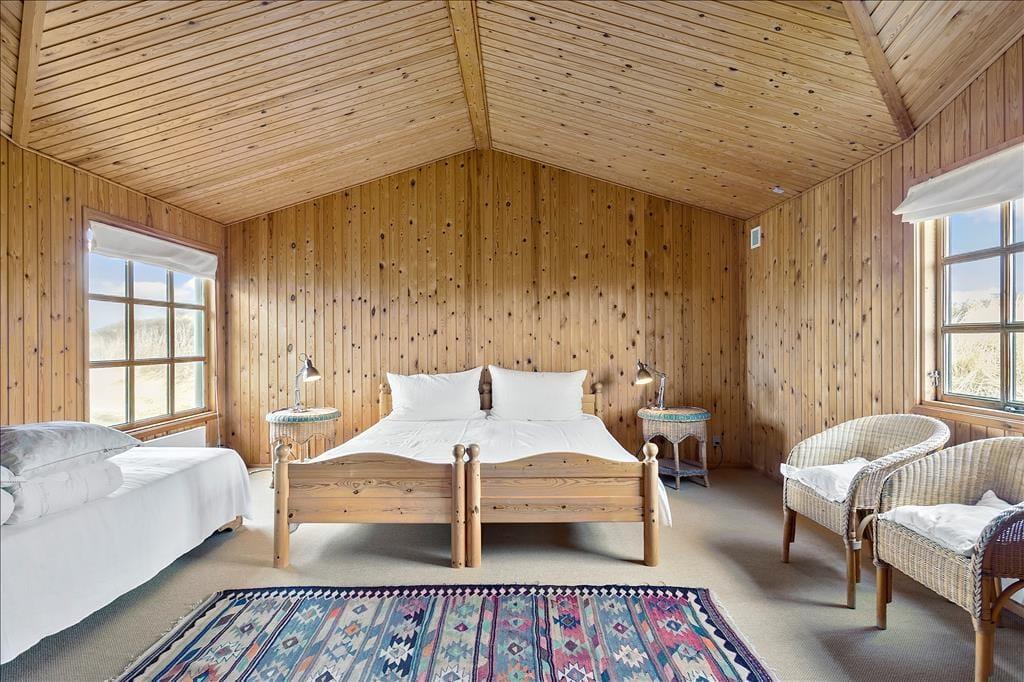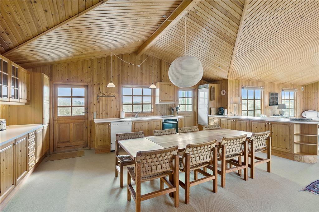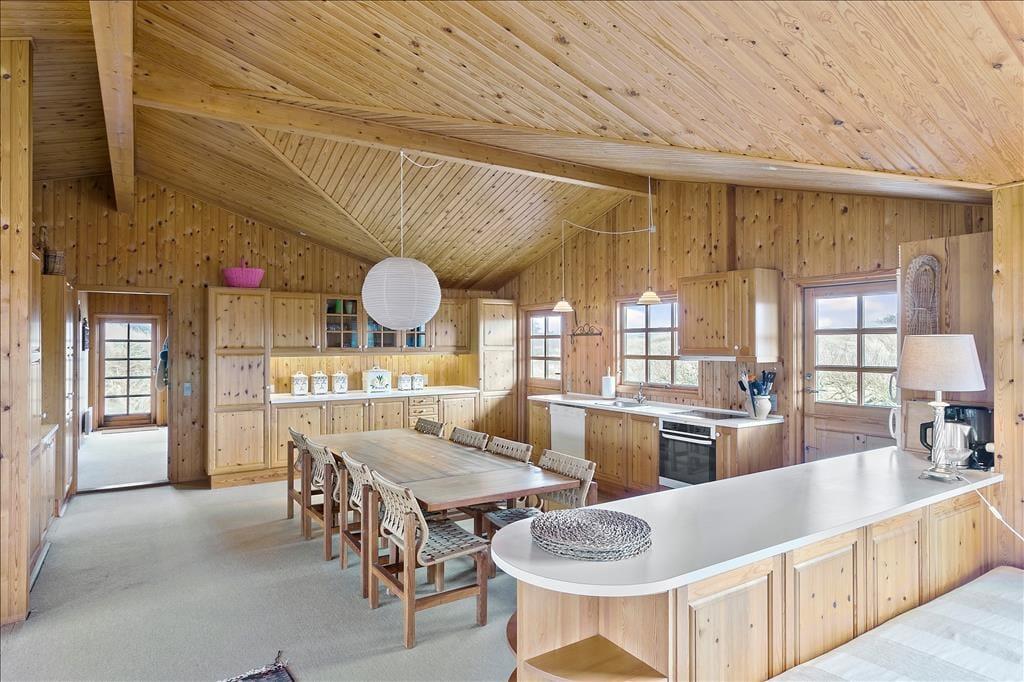 Når I træder indenfor i det 146 m2 store sommerhus, kan I straks mærke den hyggelige atmosfære. Trælisterne på væggene er umalede, loftet er ført op til kip på klassisk manér, og fra alle vinduer kan I nyde den fine udsigt, der minder jer om, at I befinder jer langt væk fra hverdagens rutiner. I den ene ende af huset ligger et stort og rummeligt opholdsrum, hvor I rigtig kan slænge jer i de bløde siddemøbler og hygge jer med madlavning og måltider i det åbne køkken. De to soveværelser er også rummelige, og det samme er badeværelset, der er udstyret med bruseniche, vaskemaskine og tørretumbler.