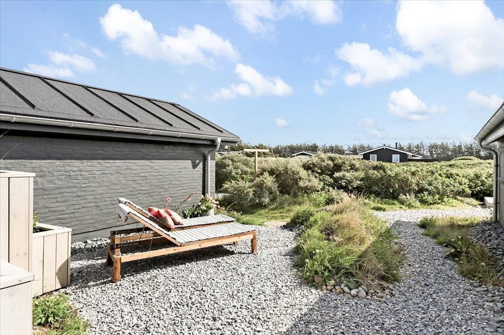 Ude i det fri kan I se frem til at nyde livet på den store naturgrund, der smelter sammen med det omkringliggende landskab. Syd for sommerhuset ligger en stor træterrasse, der er udstyret med kvalitetshavemøbler såvel som en grill, så I kan tilberede aftensmaden ude i de smukke og fredelige omgivelser.