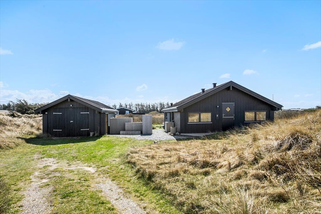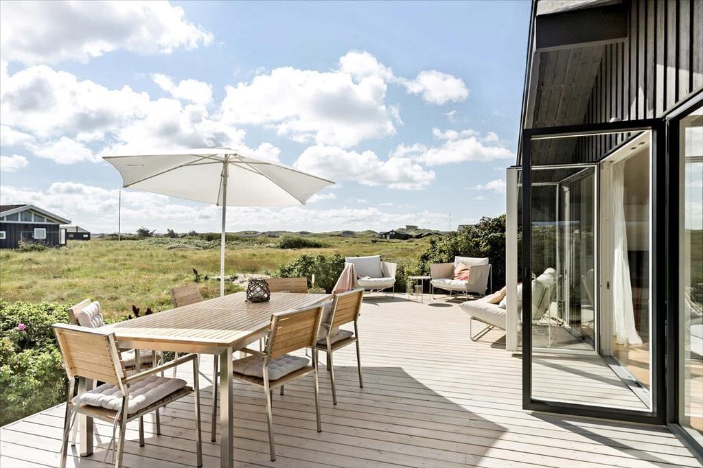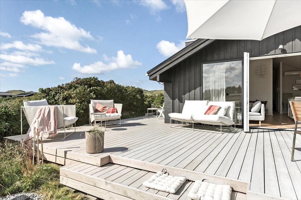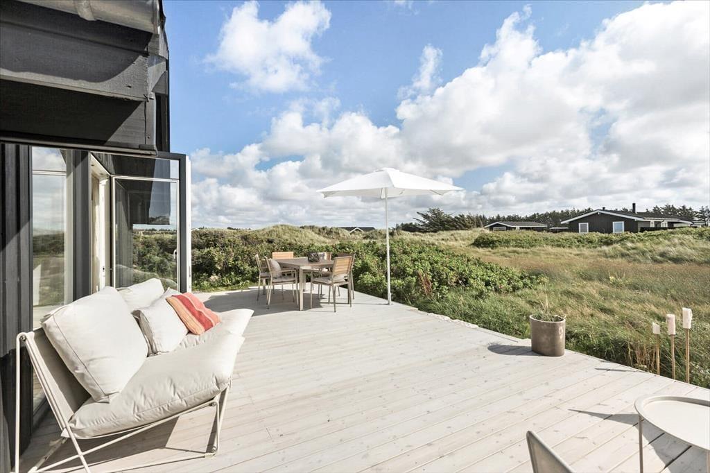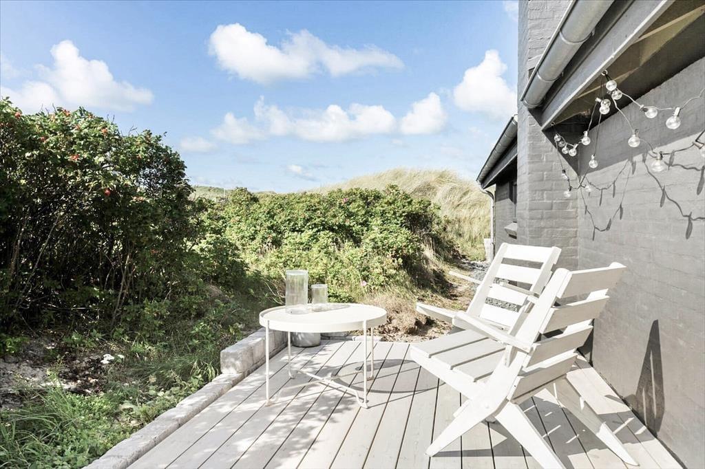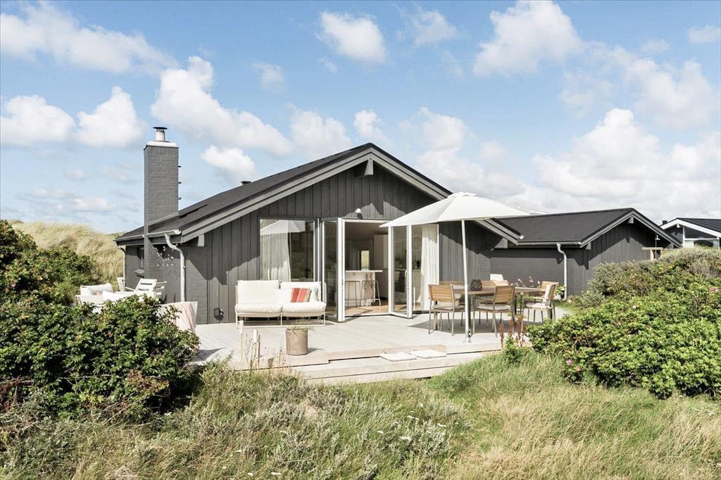 Dette sommerhus er renoveret i 2021 – og resultatet er særdeles tilfredsstillende! Derfor kan I se frem til at holde ferie i lyse og lækre rammer inden døre, og ude kan I sole jer på en stor træterrasse med udsigt til Løkkens bølgende klitlandskab.