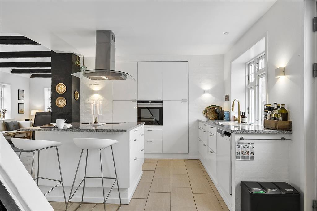 Nyt og gammelt mødes på smukkeste vis i dette hus, der er opført i 1913 og moderniseret med stor respekt for den originale stil. Her får I et strejf af det ”gamle” autentiske Løkken i en feriebolig, der er både rummelig, stilfuld og særdeles komfortabel. Indenfor er der lyst og indbydende, og de mange originale detaljer sætter en helt særlig stemning. Boligens 186 m2 tæller blandt andet et stort, sammenhængende opholdsmiljø i stueplan med åbent køkken, hvor de kulinariske udfoldelser får suveræne betingelser. Der er tre soverum og badeværelse. Huset rummer også et gæstetoilet, og på førstesalen er der ekstra opholdsplads under de hyggelige skråvægge – blandt andet et aktivitetsrum.
