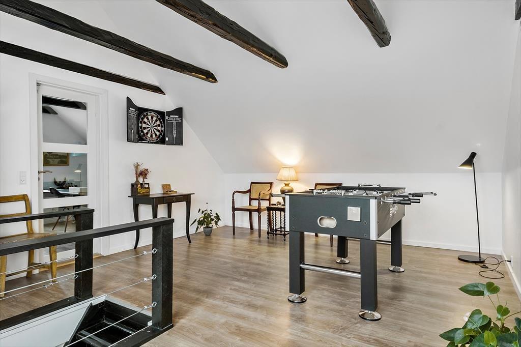 Med ferieadresse her får I bogstaveligt talt Løkken for jeres fødder. Huset ligger i en hyggelig gade med ældre, charmerende huse, og der er få skridt til byens mange spisesteder og butikker. Om sommeren summer byen af en skøn feriestemning, og vil I lave mad selv, er der gode indkøbsmuligheder. Ferieliv i Løkken rimer naturligvis også på badeliv, og fra jeres gadedør er der blot 450 meter ned til den flotte brede sandstrand, hvor I kan hoppe i det friske, salte vand eller gåture langs kysten. Løkken er også et godt udgangspunkt for udflugter i Nordjylland – tag eksempelvis turen til Skagen, Ålborg eller de mange små og hyggelige feriebyer langs vestkysten.