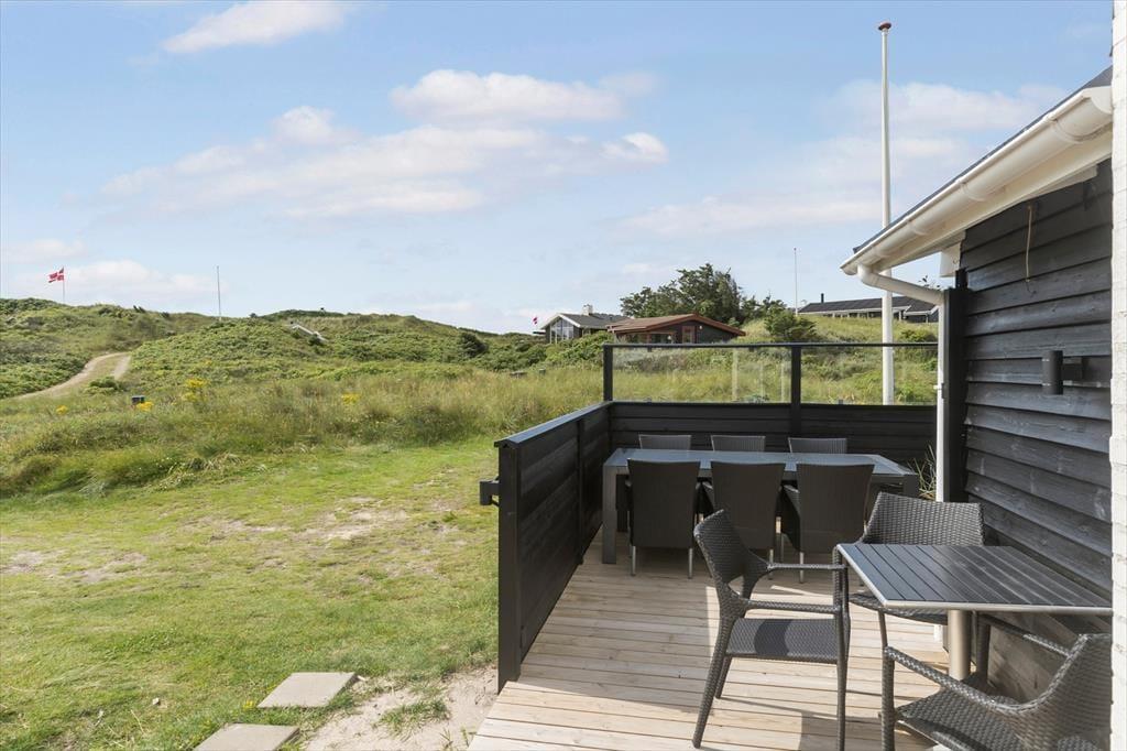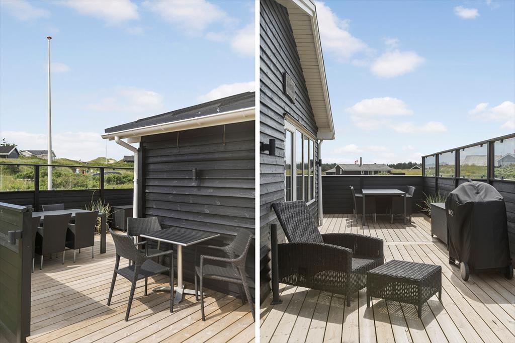 Feriestemningen er også helt i top, når I slapper af ude i det fri på klitgrunden. Her kan I slænge jer på husets store solrige terrasse, der er delvist afskærmet – så der er mulighed for at finde læ selv på en dag med vestenvind. For at I kan have det komfortabelt, er der både havemøbler og liggestole til rådighed, og I kan også finde grillen frem, hvis I får lyst til at tilberede aftensmaden ude i det fri.