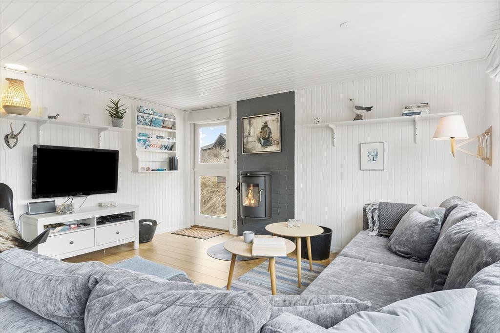 Kvadratmeterne er godt udnyttede i sommerhuset, der byder på et rummeligt badeværelse med bruseniche, tre gode soveværelser og en skøn stue med integreret køkken. Alle rum fremstår pæne og velholdte, og de lyse farvetoner er med til at give rummene en behagelig atmosfære. Stuens brændeovn har også indvirkning på hyggestemningen, når der er tændt op om aftenen, og i løbet af dagen er det skønt at kunne kigge ud på klitlandskabet – sådan en udsigt er en fin påmindelse om, at I holder ferie langt væk fra hverdagens rutiner.
