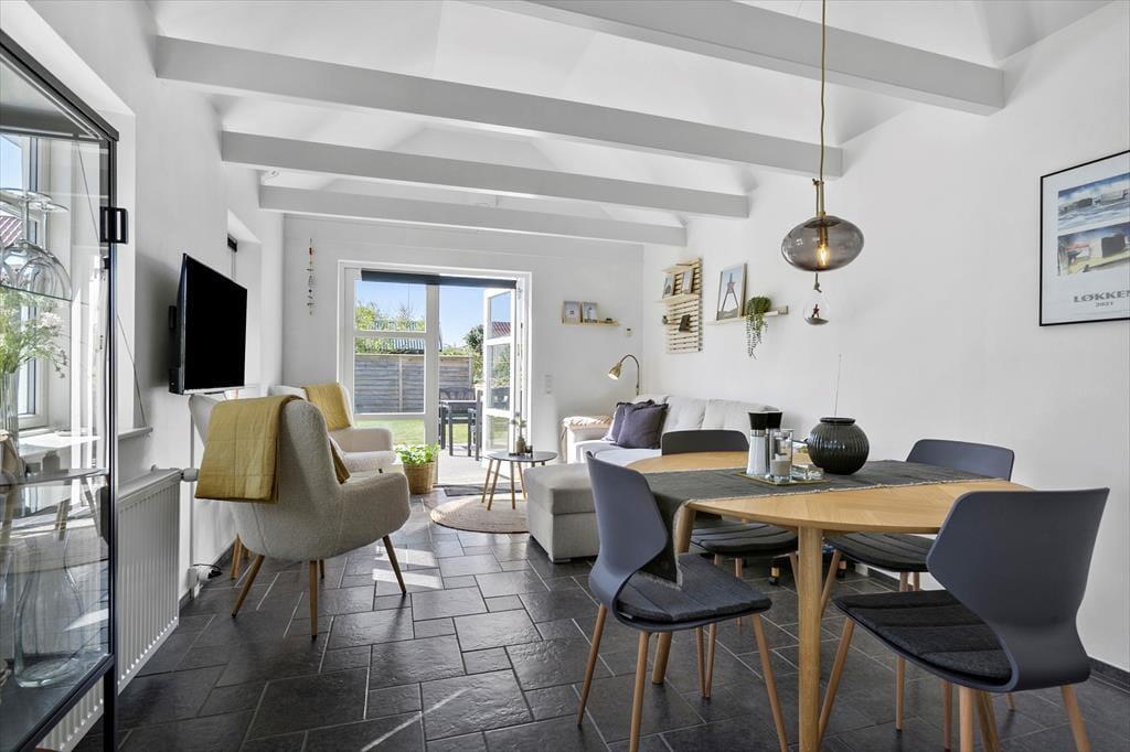 Løber I tør for ketchup til grillmiddagen eller mælk til kaffen, er det virkelig praktisk, at sommerhuset ligger bare få hundrede meter fra nærmeste supermarked. Har I mere lyst til at få maden serveret, har I også flere spisesteder i nærheden, så I kan sætte jer på en udeservering, mens I nyder Løkkens hyggelige feriebystemning. Fra Norgesvej tager det ikke mange minutter at gå ned på stranden – så I skal endelig huske at tage badetøj med i feriebagagen, hvis I er til opkvikkende saltvandsdukkerter og strandspil langs med Vesterhavet. Spiller I golf, ligger Løkken Golfklub lige udenfor byen, og I bor blot en kort køretur fra Fårup Sommerland, Børglum Kloster, Rubjerg Knude og andre lokale seværdigheder.
