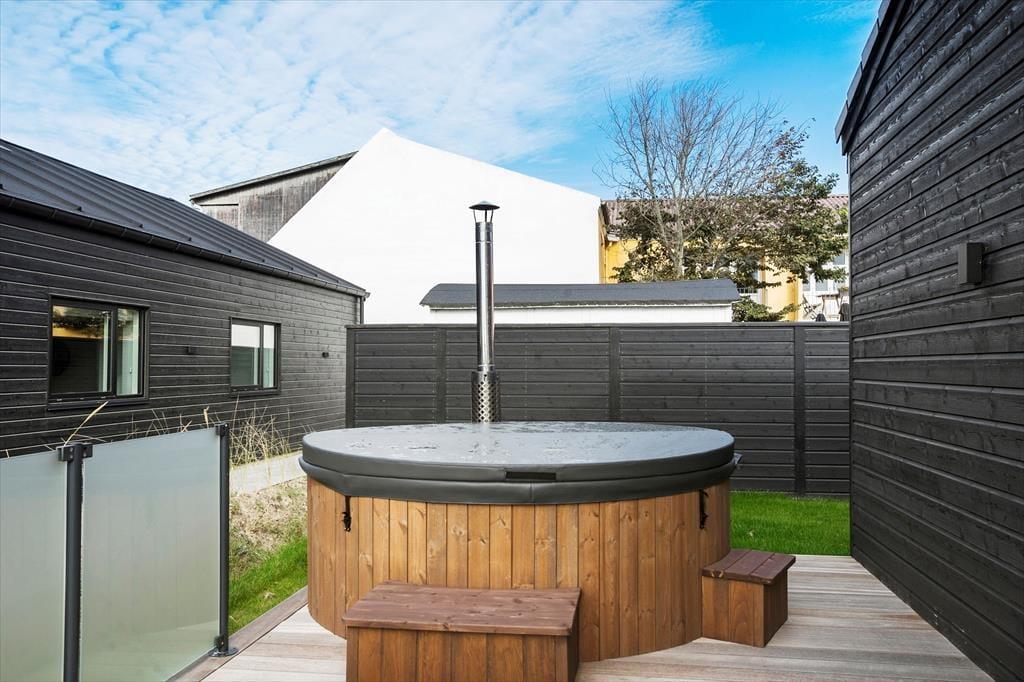 Dette store sommerhus fra 2022 er indrettet med sauna på det ene badeværelse, et aktivitetsrum med poolbord og et lækkert terrassemiljø med vildmarksbad. Som endnu et plus ligger det på Augustvej tæt på Løkkens bymidte såvel som Vesterhavet, så alt i alt er det et fremragende sted at tilbringe feriedagene.