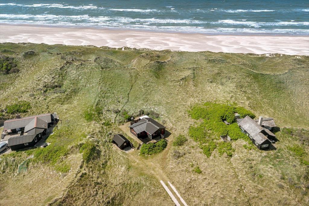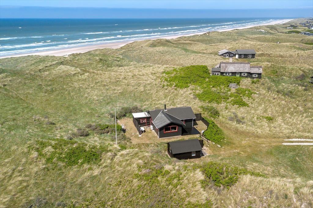 Den 2600 m2 store klitgrund ligger helt forrygende for enden af Ellysvej og lige ud mod stranden. Ved huset ligger en dejlig terrasse, hvor I kan slappe af i liggestolene i løbet af dagen og grille om aftenen – og måske kan I endda fornemme lyden af bølgerne og duften af salt havluft, når I sidder her og nyder freden.