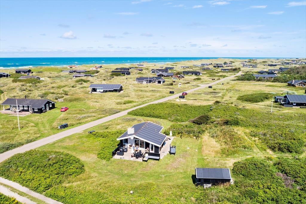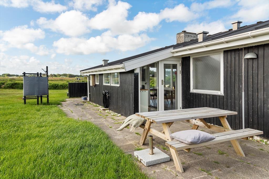 På den 2576 m2 store naturgrund har I god plads til leg og havespil på de åbne arealer mellem hybenbuskene. Nær sommerhuset er der flere fliseterrasser at vælge imellem: Den østvendte terrasser er især god først på dagen, hvis I vil drikke kaffe i solen, og senere kan I rykke hen på den sydvendte, der byder på en udendørs pejs, så I kan nyde ferielivet på komfortabel vis, og der er også en udendørs bruser, hvis I vil skylle sand og saltvand af, når I vender hjem fra badeturen.