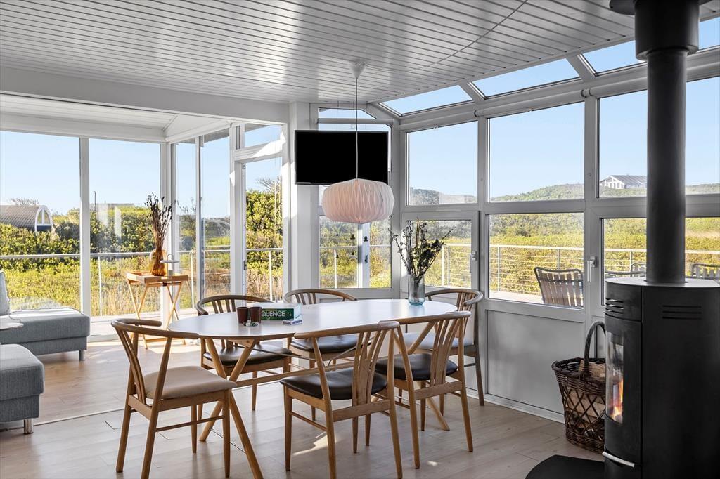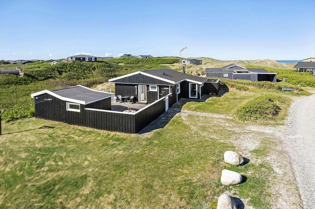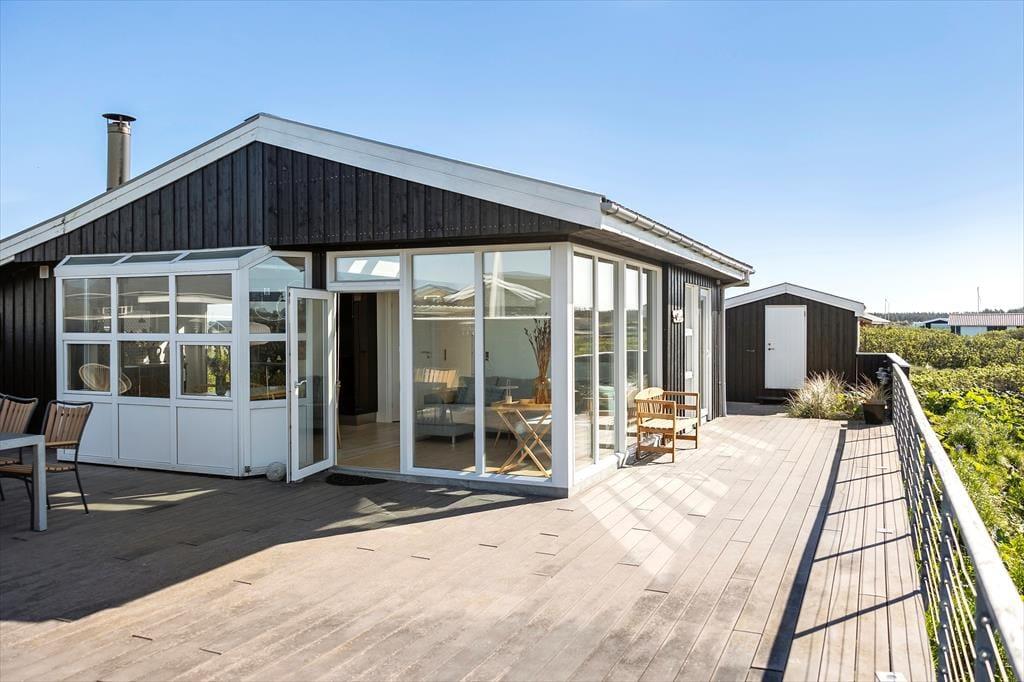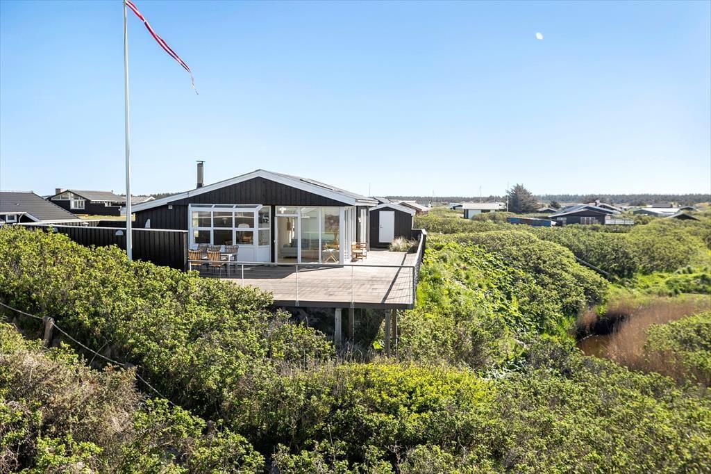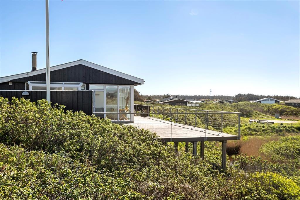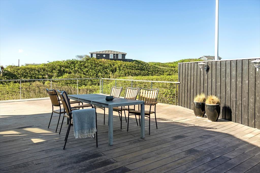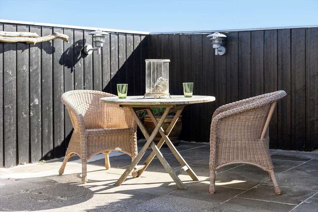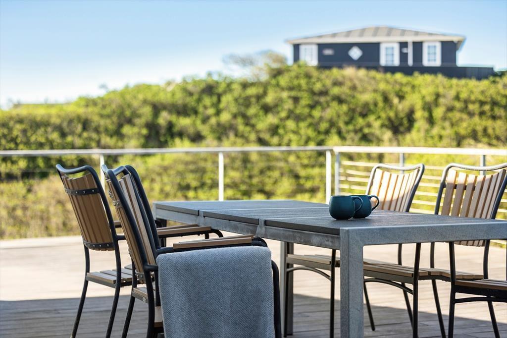 Livet under åben himmel får bestemt også gode vilkår her på Emil Nielsensvej 23. Et superlækkert terrassemiljø breder sig rundt om sommerhuset, og herfra har I et flot kig ud over det grønne landskab. Flere har for øvrigt spottet oddere her ved bækken, så måske er I også heldige? Terrassen er skærmet af et plankeværk ud mod vejen, og klitterne sørger også for, at udearealerne ligger lidt i læ, hvis det blæser fra vest. På grunden er der desuden en græsplæne, så der er plads til havespil, hvis ikke I hellere vil boltre jer nede på stranden.