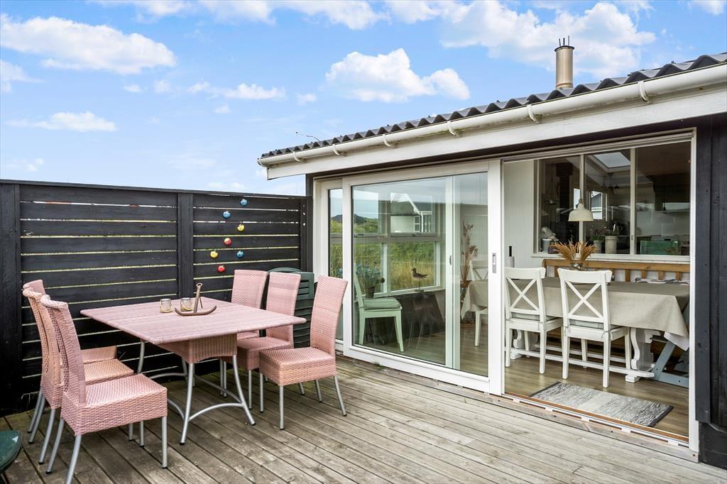 Udestuen er god til eventuelle kølige forårsdage eller sommeraftener. Men når når vejret er lunt og solrigt, er det sikkert terrassemiljøet, der vinder prisen som det foretrukne opholdssted. Der er et overdækket areal, men ellers er terrassen åben – hvis man altså ser bort fra afskærmningen og hegnet, der giver læ og sørger for, at hunden ikke løber væk.