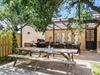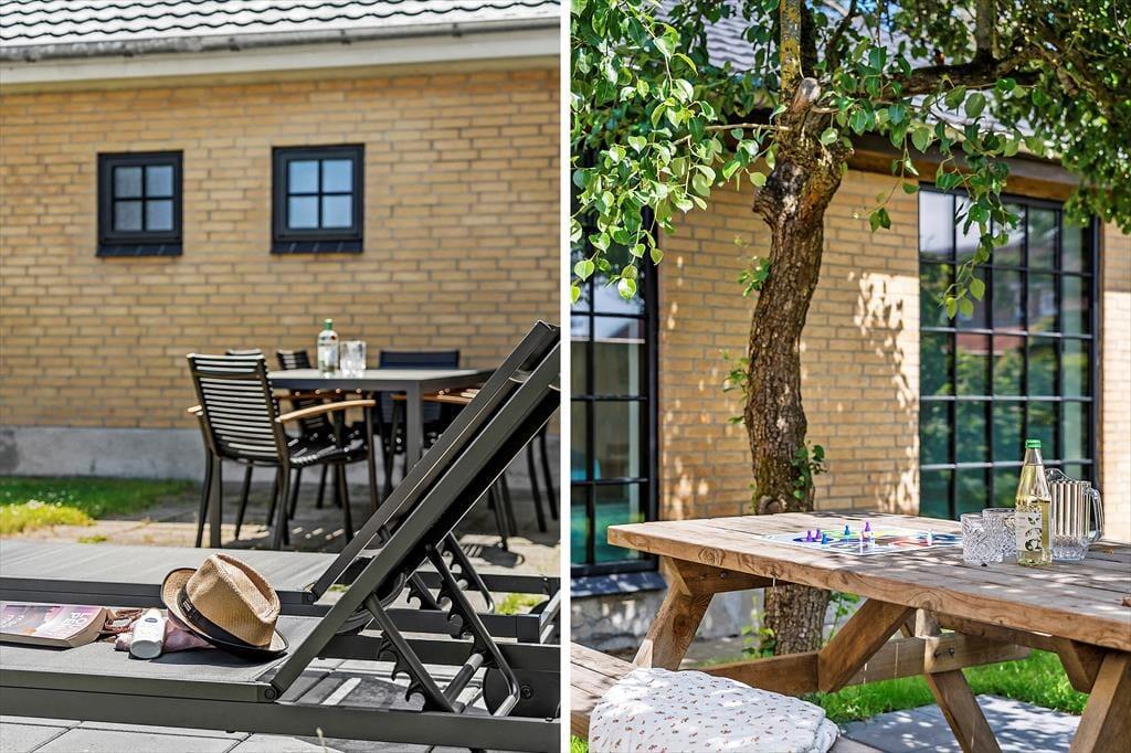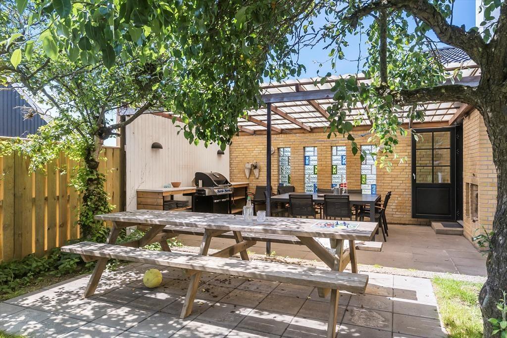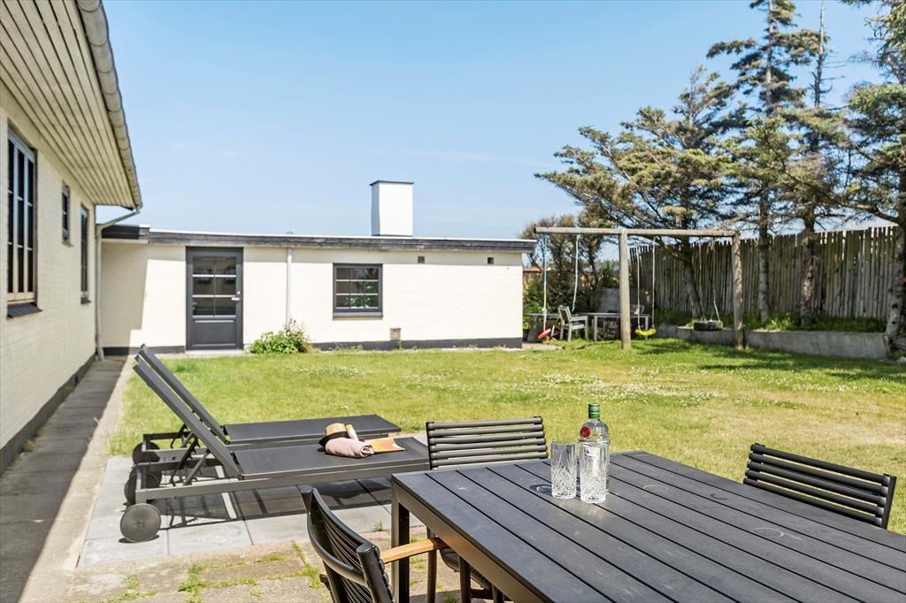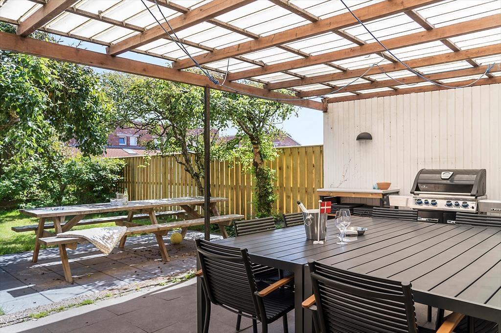 Vest for sommerhuset ligger en delvist overdækket terrasse, hvor I kan slå jer ned omkring havebordene for at drikke eftermiddagskaffe eller grille om aftenen. I baghaven er der også et mindre terrasseareal mod øst, og på græsplænen kan I lege og spille bold. Indkørslen er bred, så her kan der sagtens holde flere biler parkeret, og der er for øvrigt mulighed for at oplade elbil ved huset.