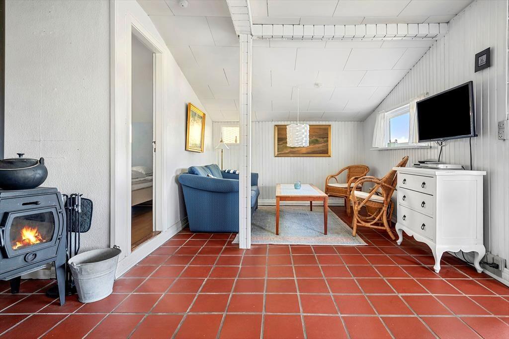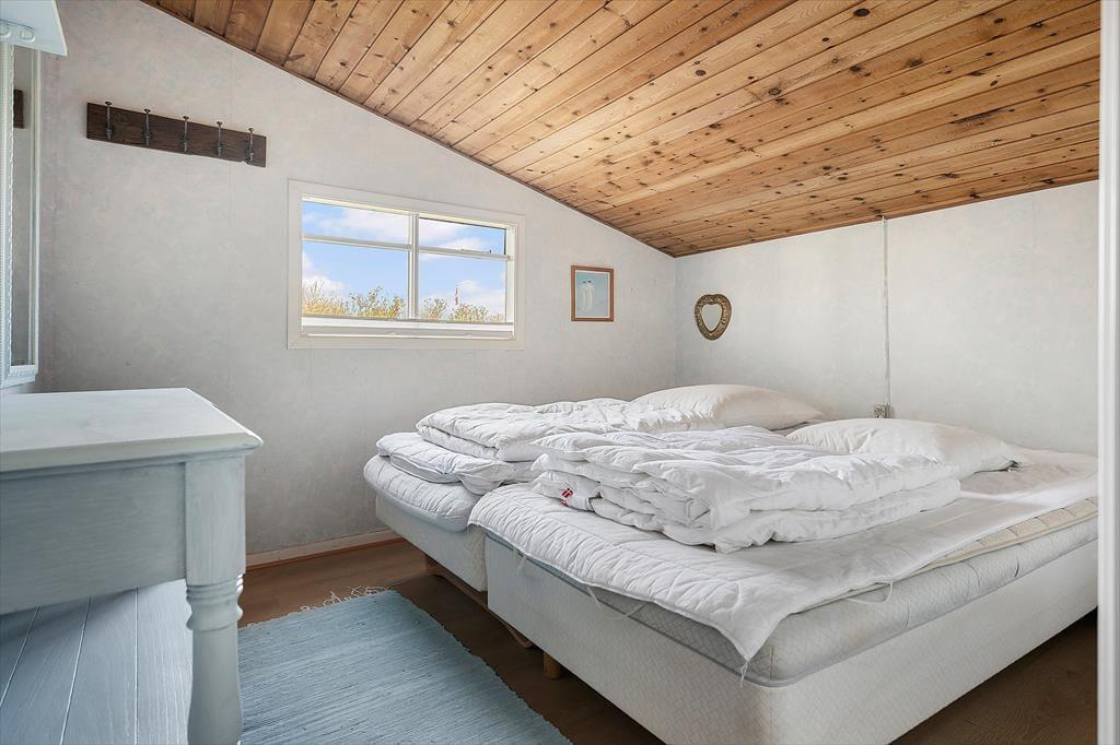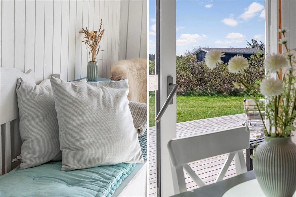 Det 120 m2 store sommerhus er opdelt i to fuldt udstyrede boligenheder, der hver især byder på køkken, stue, badeværelse og soveværelser – det ene er med to soveværelser og det andet med tre soveværelser. Derudover har I adgang til et 15 m2 stort anneks, der foruden ekstra sengepladser også har et lille tekøkken og eget toilet. Kort sagt er det den perfekte base, hvis I skal være mange samlet, men også har brug for lidt privatliv i ny og næ. Rummene har en lys og venlig indretning, og det er nemt at finde en god hyggekrog, uanset om I vil spille brætspil nær brændeovnen, se film eller slappe af i havestuen.