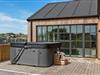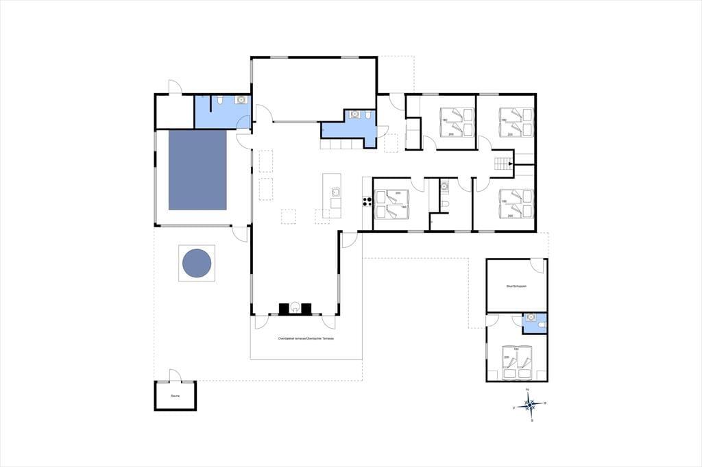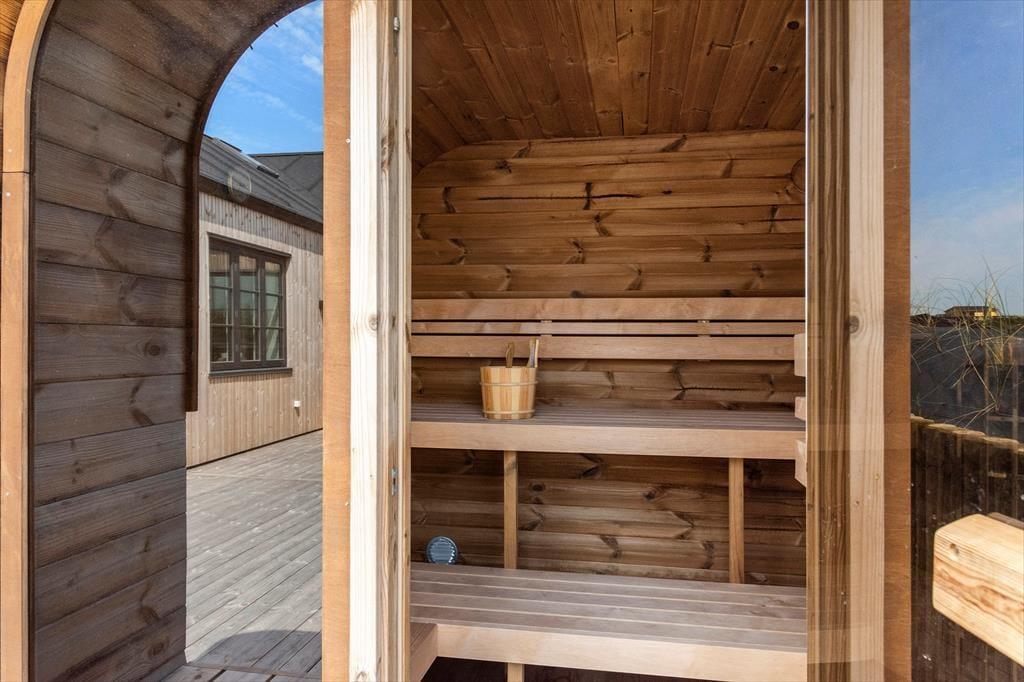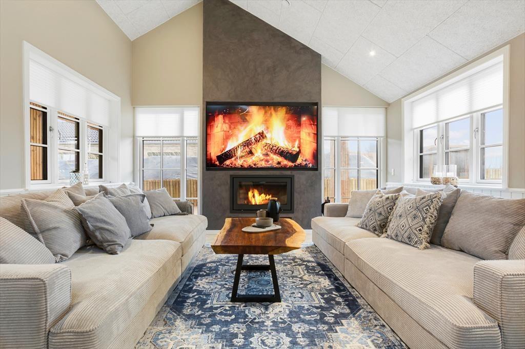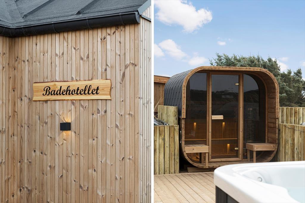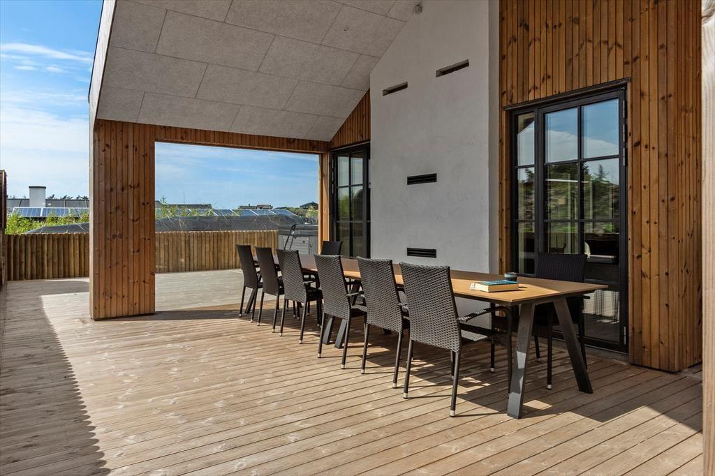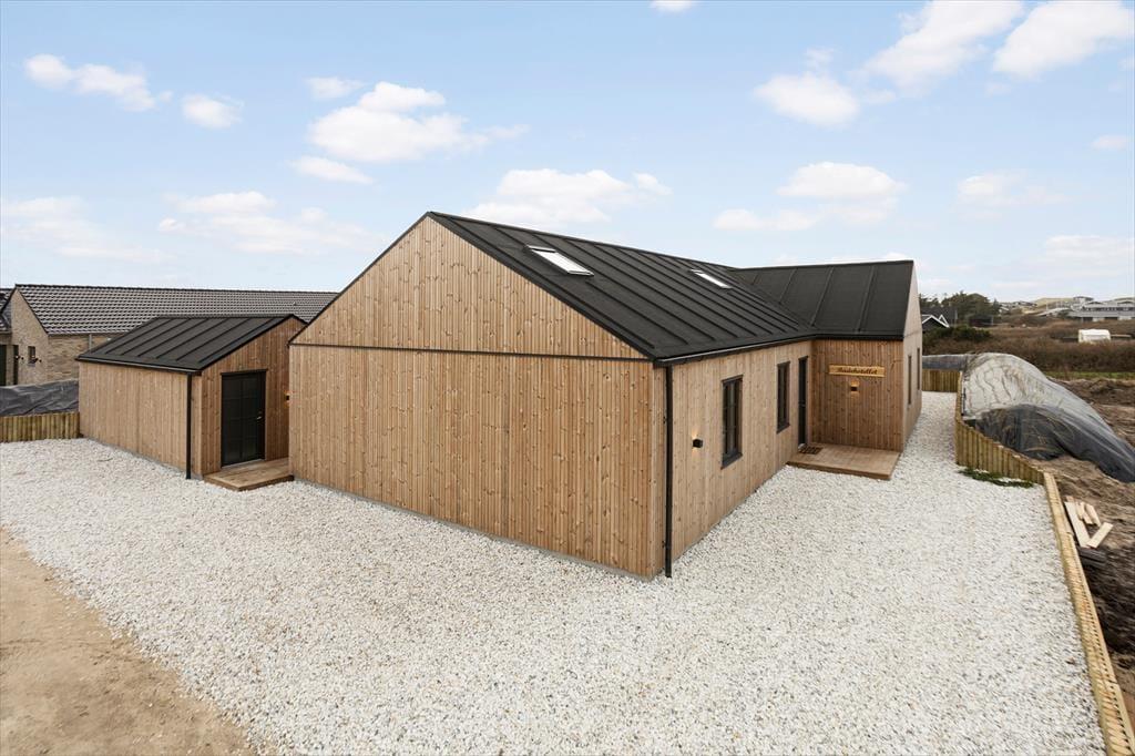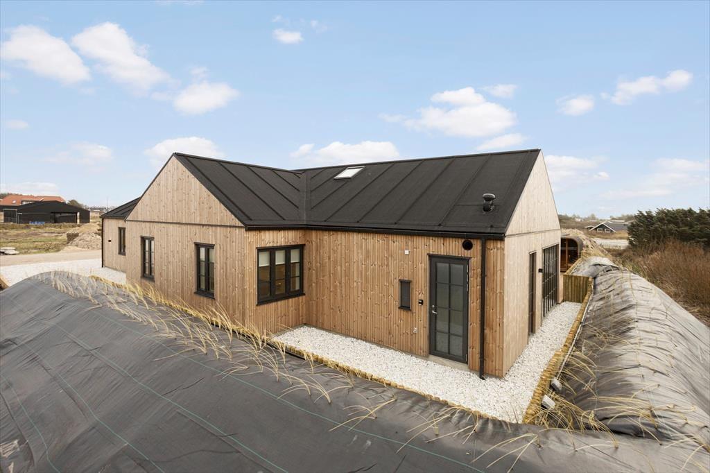 Moderne sommerhus i Løkken med pool, spabad, brændeovn og aktivitetsrum, tæt på strand og by.