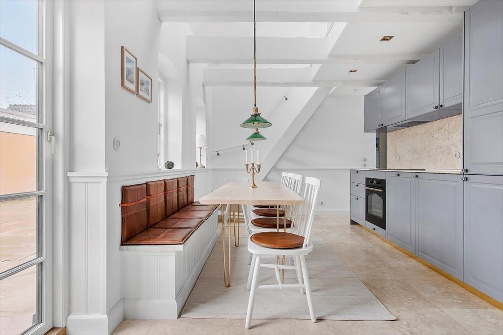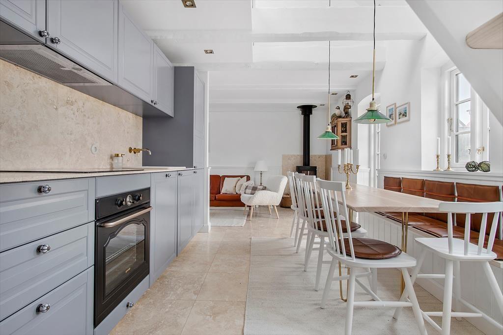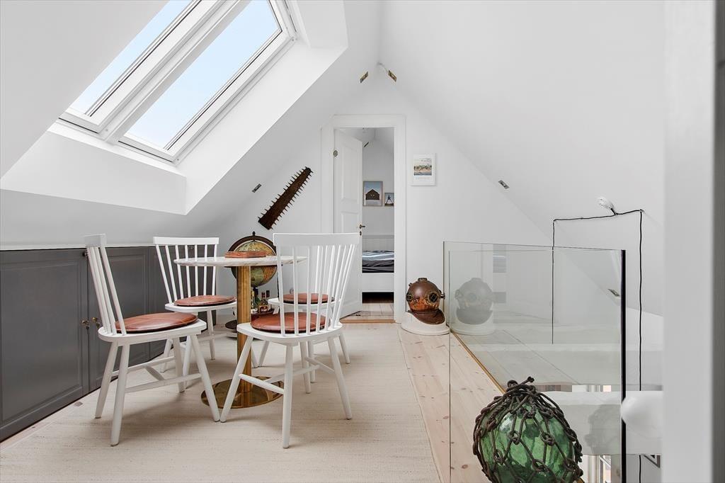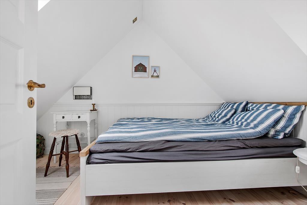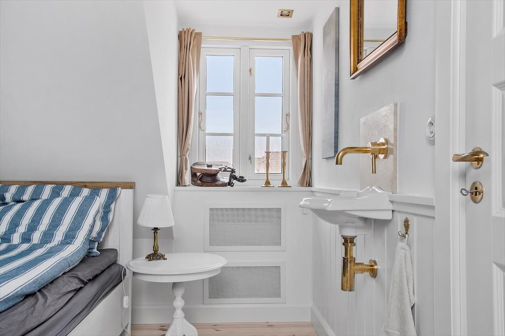 Sommerhuset er mere præcist et klassisk fiskerhus med gul facade og rødt tegltag, og allerede før, du træder indenfor, er det tydeligt at se, at ejendommen fremstår særdeles velholdt. Samme indtryk gør sig gældende inde døre, hvor et lyst og indbydende feriehjem åbenbarer sig: Alt, lige fra de smukke gulve og høje vægpaneler til det elegante køkken og den væghængte brændeovn bidrager til helhedsindtrykket, så du kan straks føle dig godt tilpas i stuen. Ikke bare her, men også på de fire soveværelser og på førstesalens gennemgangsrum minder maritime nipsgenstande og billeder dig om, at du befinder dig meget tæt på stranden – og det giver også rummene et skær af badehotel, som understreger luksusfornemmelsen af ro og hygge. Huset er godt isoleret og velegnet til udlejning hele året.