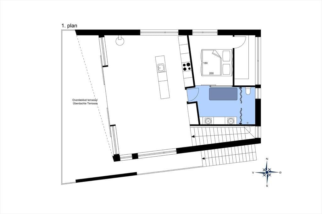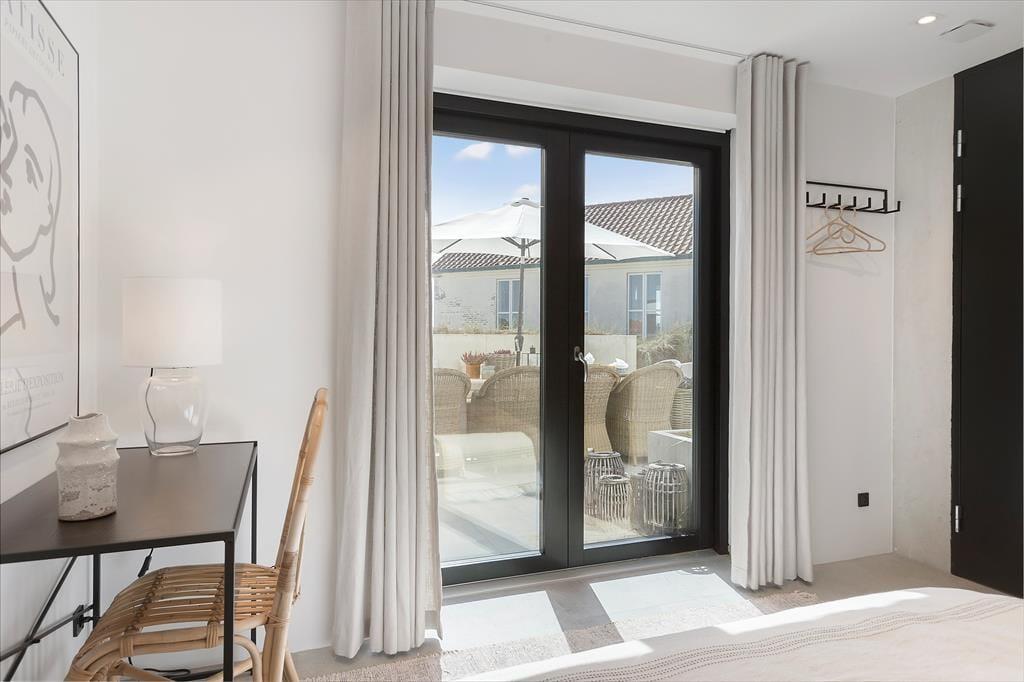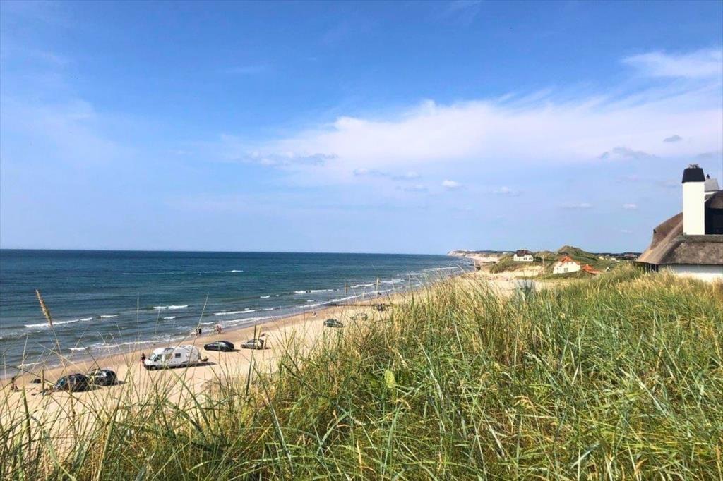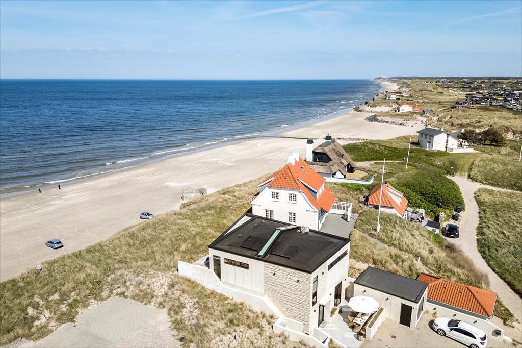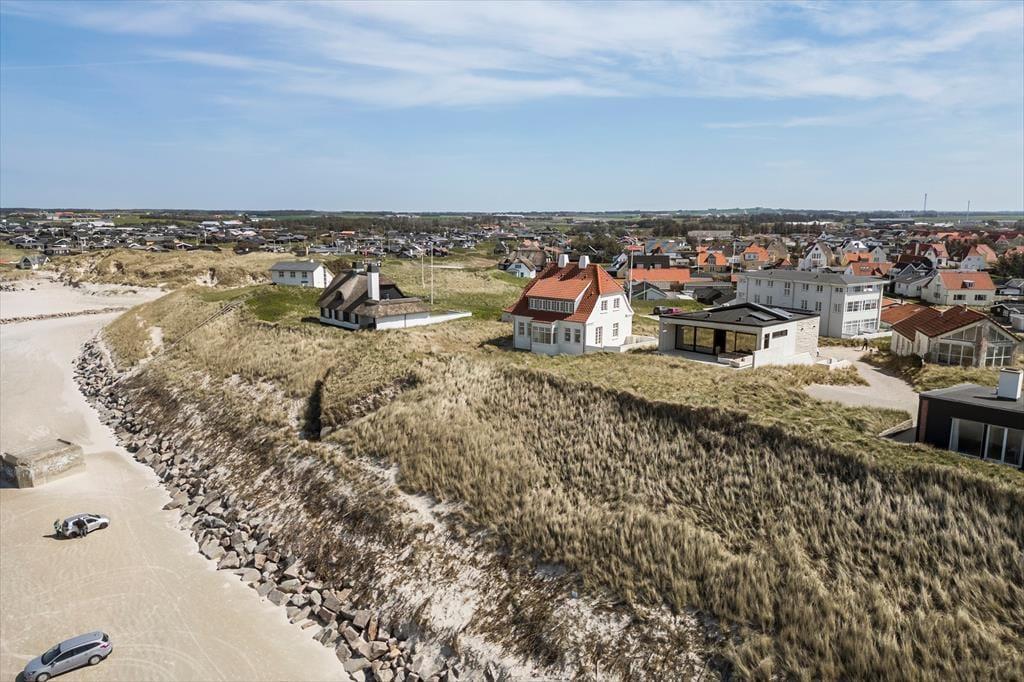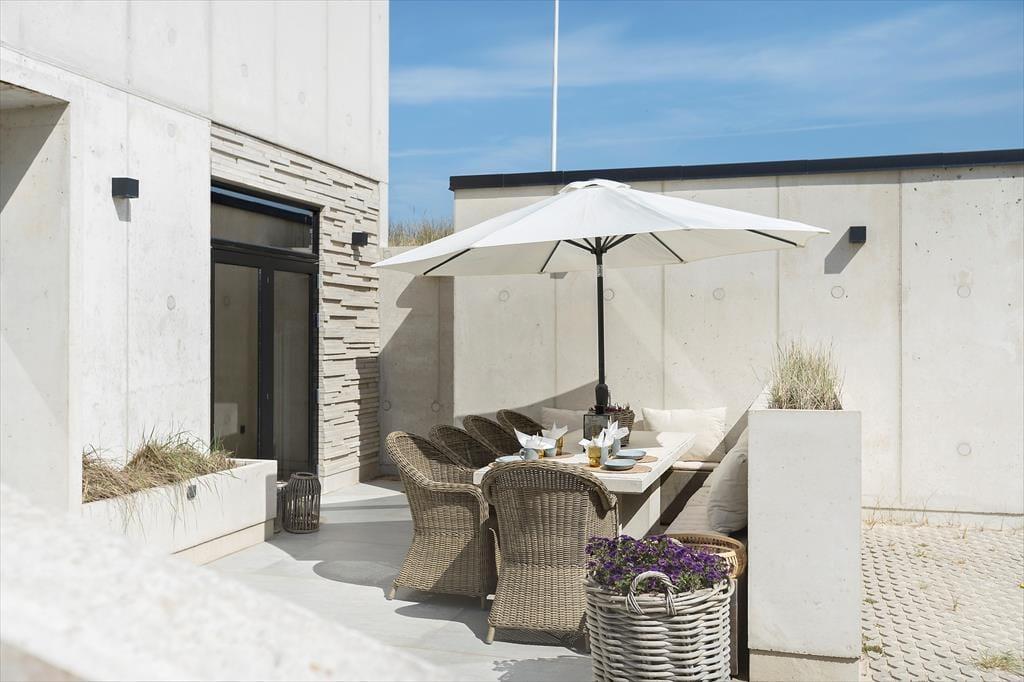 Der er terrasser på begge sider af huset, så det er nemt at finde den helt rette opholdsplads. Det sydøstlige opholdsmiljø er dejligt solrigt først på dagen, og her sørger klitterne og selve huset for læ, hvis det skulle blæse ind fra havet. Panoramaudsigten er til gengæld intet mindre end fantastisk fra den nordvestvendte terrasse, for du sidder lige ud mod den bølgende marehalm og med frit udsyn til hav og høj himmel – og det er selvfølgelig også her, du skal opholde dig, når solen går ned og maler omgivelserne i orange og rosa farvetoner.