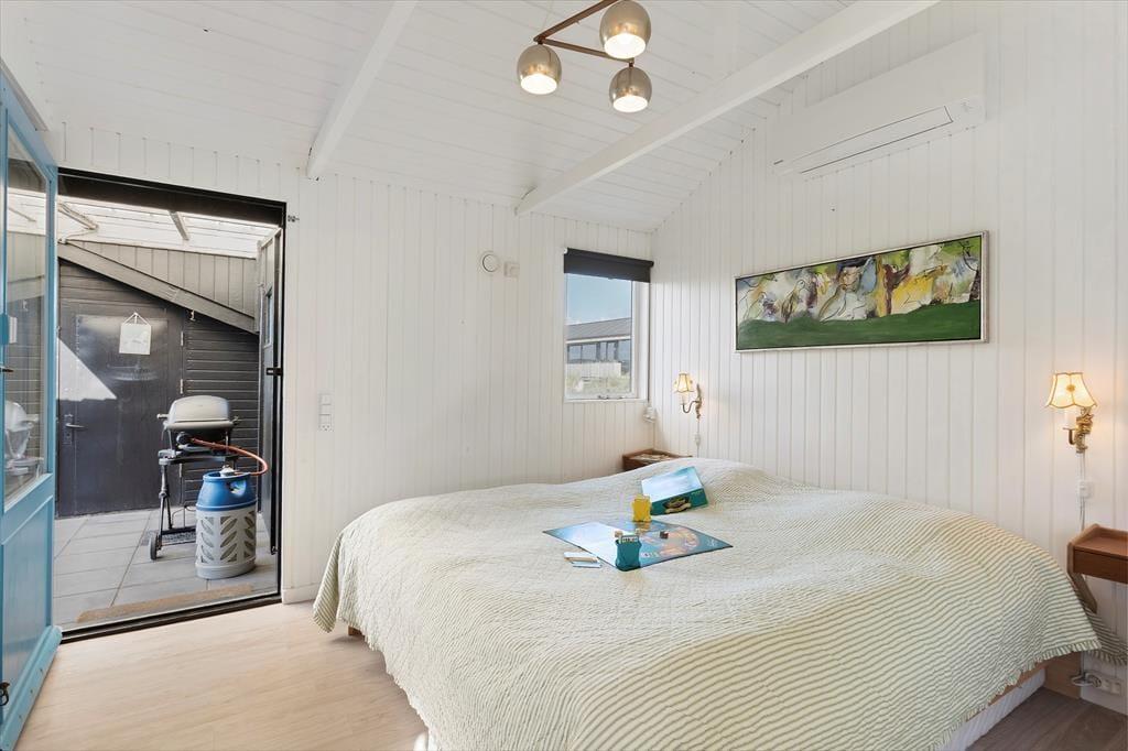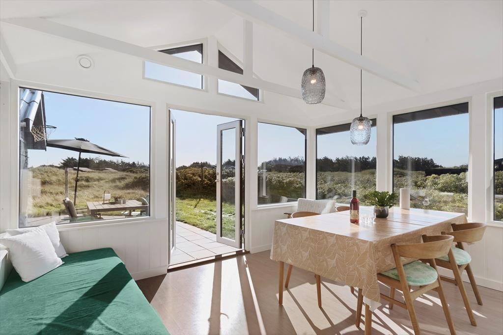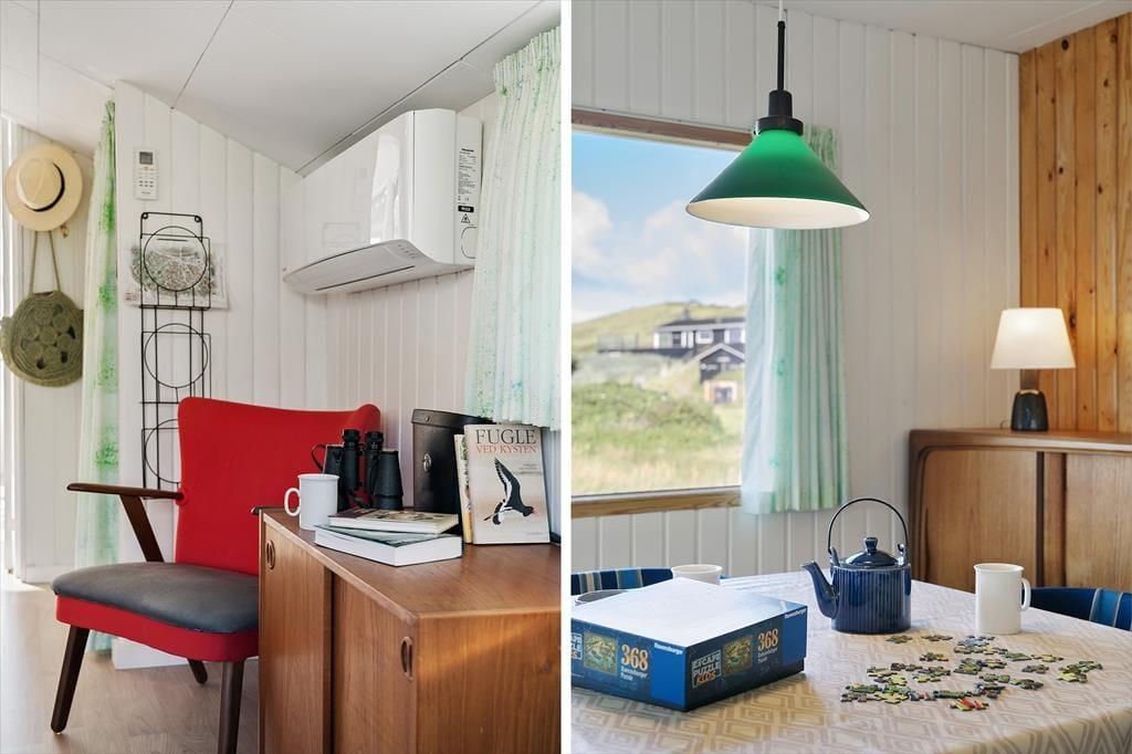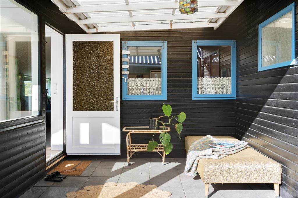 Sommerhuset byder på en charmerende og lys indretning, hvor hyggelige kroge og praktiske løsninger gør det nemt at slappe af og nyde samværet. Inde i huset finder du to gode soveværelser og et badeværelse med behagelig gulvvarme, som gør morgenerne ekstra rare. Køkken og stue er integreret i et åbent og indbydende opholdsområde, hvor store vinduer lukker masser af lys ind og inviterer naturen med indenfor. Ved siden af stuen kan du træde ud i en hyggelig udestue, hvor en biopejs spreder varme og atmosfære – perfekt til de stille aftener med en kop varm kakao og en god bog. Udestuen forlænger sæsonen og er ideel, uanset om du vil nyde de sidste solstråler i foråret eller lune efterårsaftener. Huset rummer også et praktisk vaskerum med indgang fra terrassen, så det er let at vaske sandet af efter en tur til stranden. Annekset, der ligger separat fra hovedhuset, har sit eget soveværelse og gæstetoilet, hvilket giver ekstra plads og privatliv, hvis du har gæster eller større børn med på ferie. Dette skaber en perfekt balance mellem fælles hygge og mulighed for at trække sig tilbage og nyde roen.