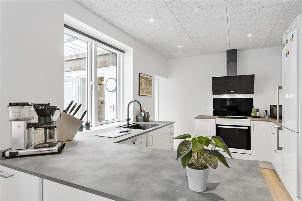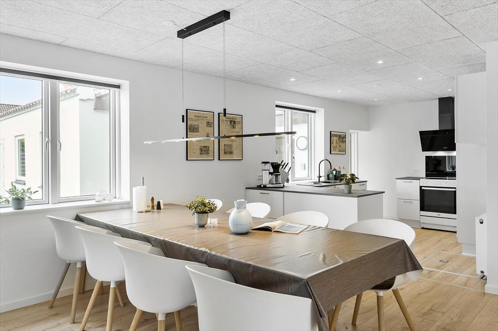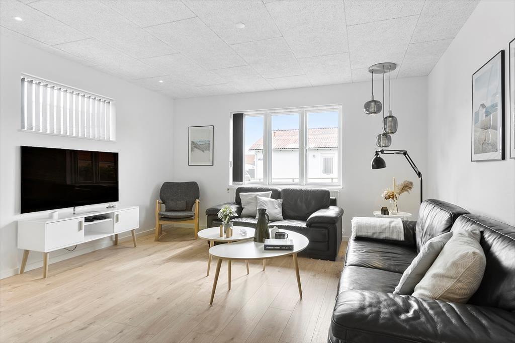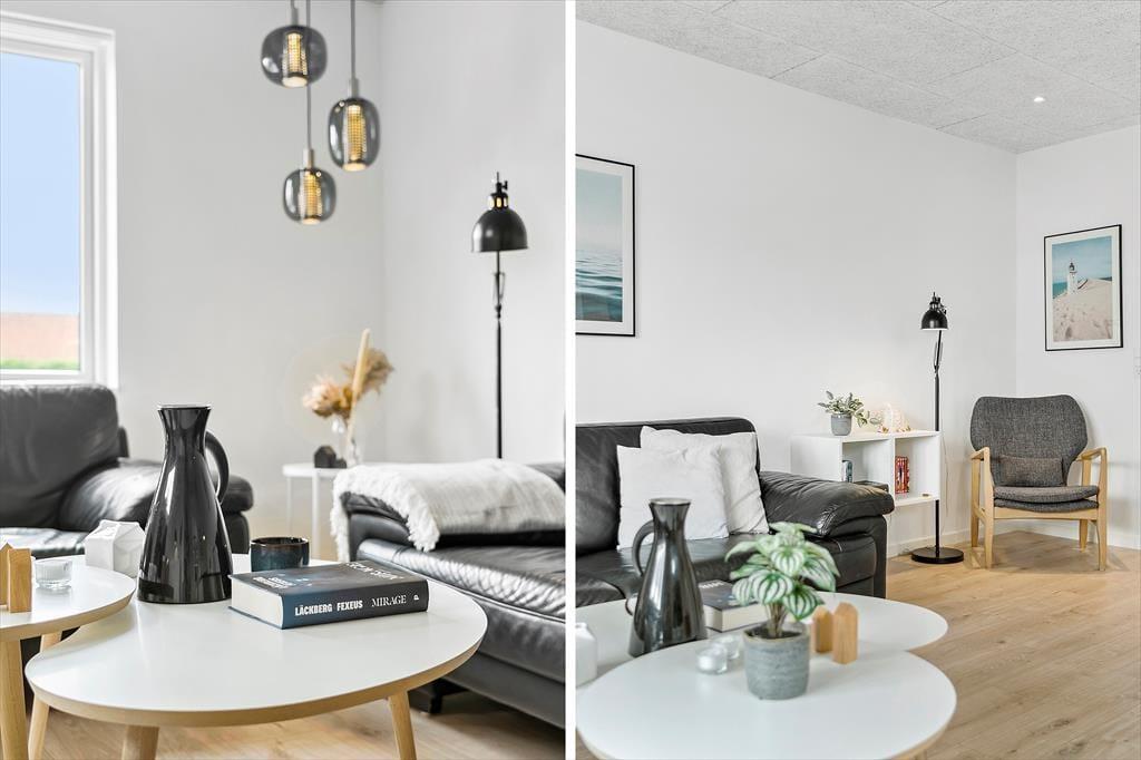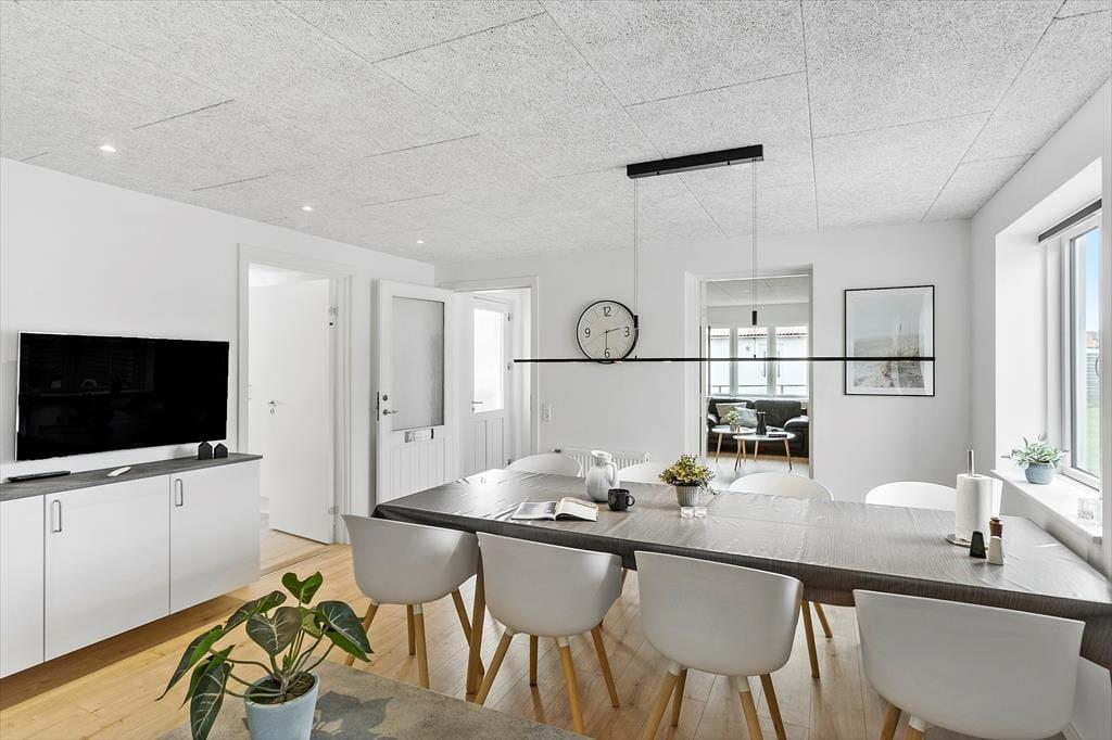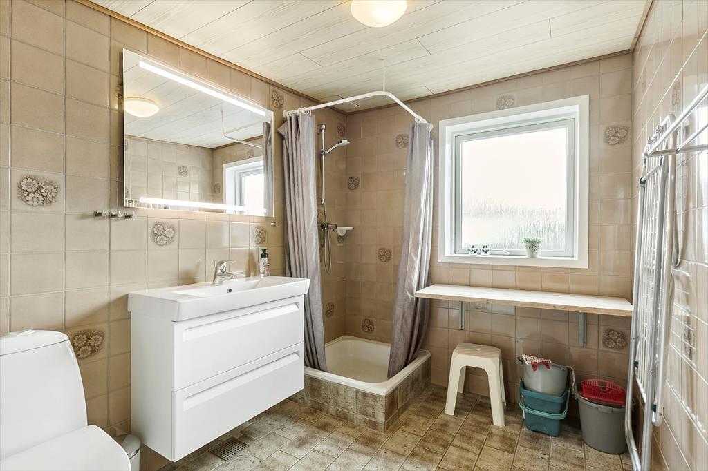 Når du træder indenfor i det renoverede sommerhus, mødes du af et skønt lysindfald fra store vinduer og en indretning, der indbyder til hygge og samvær. Stuen er lys og rummelig med en dejlig sofa, hvor hele familien kan slappe af sammen. De tre gode soveværelser byder på masser af plads til både små og store feriegæster, og der er hele to badeværelser, så I kan nyde ferien uden at skulle bekymre jer om logistikken. Det nyrenoverede køkken gør det let og sjovt at tilberede lækre måltider, og da det ligger i åben forbindelse med stuen, kan du stadig være en del af samtalen, mens maden simrer på komfuret. Her er alt, hvad du skal bruge for at føle dig hjemme, og de moderne faciliteter gør ferien endnu mere bekvem.