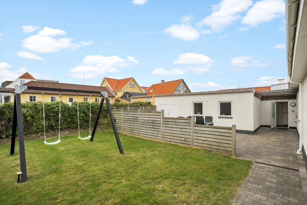 Sommerhuset har en skøn terrasse, der ligger omkranset af huset og giver dig mulighed for at nyde udelivet i fulde drag. Her kan du slappe af i solens stråler, dække op til en hyggelig middag under åben himmel eller nyde en kop kaffe i ro og mag. Terrassen er det perfekte sted til hyggelige stunder med familien – og her er både sol og skygge at finde i løbet af dagen. Om aftenen kan du tænde grillen og tilberede en lækker middag med friske råvarer, mens solen langsomt går ned i horisonten. Hvis børnene har brug for at brænde noget energi af, er der rigeligt med plads til leg og spil på græsplænen.