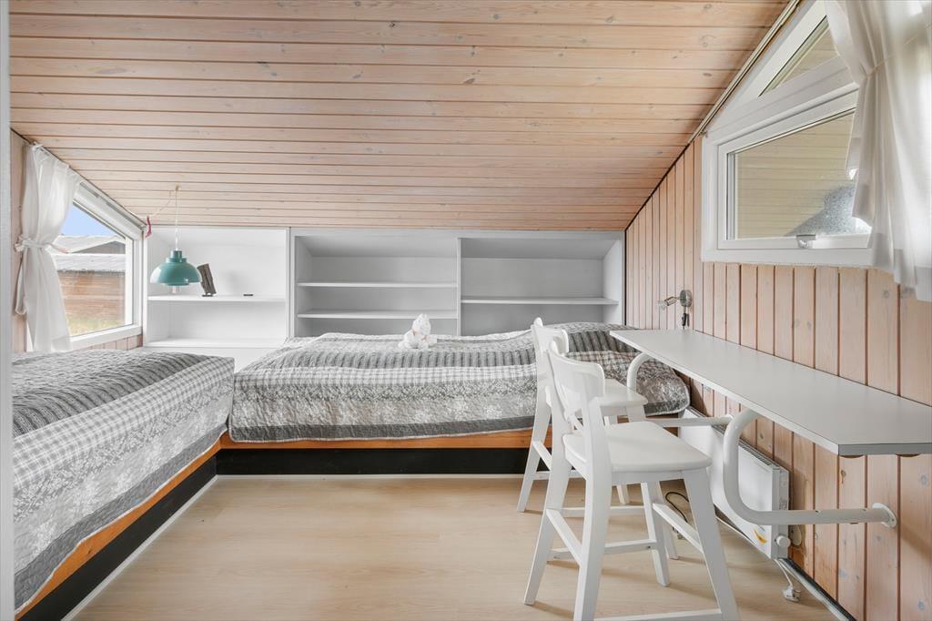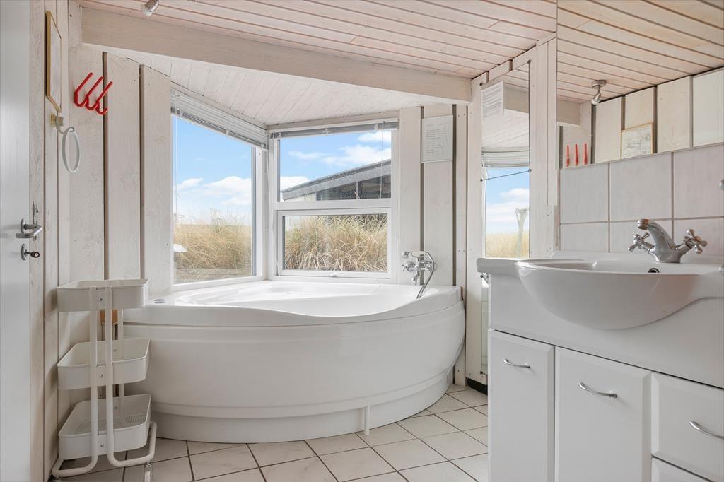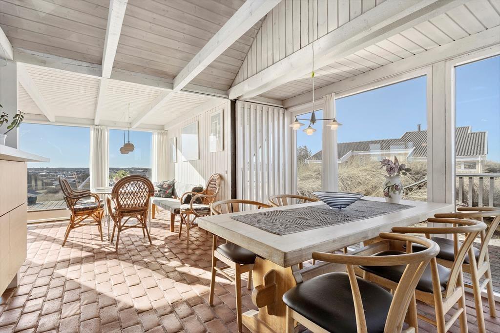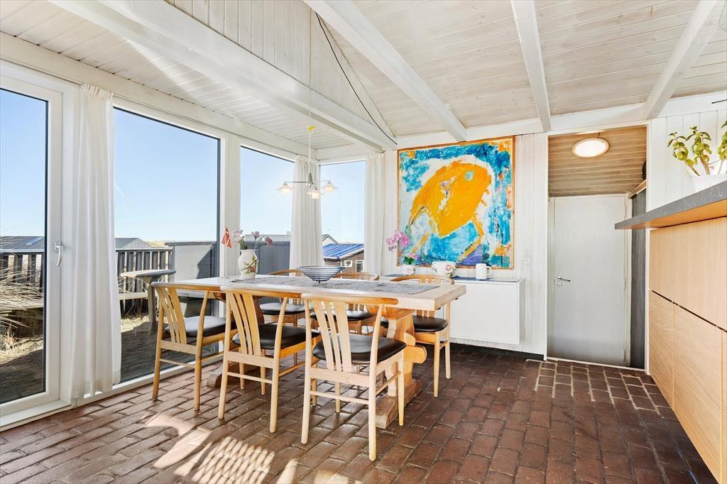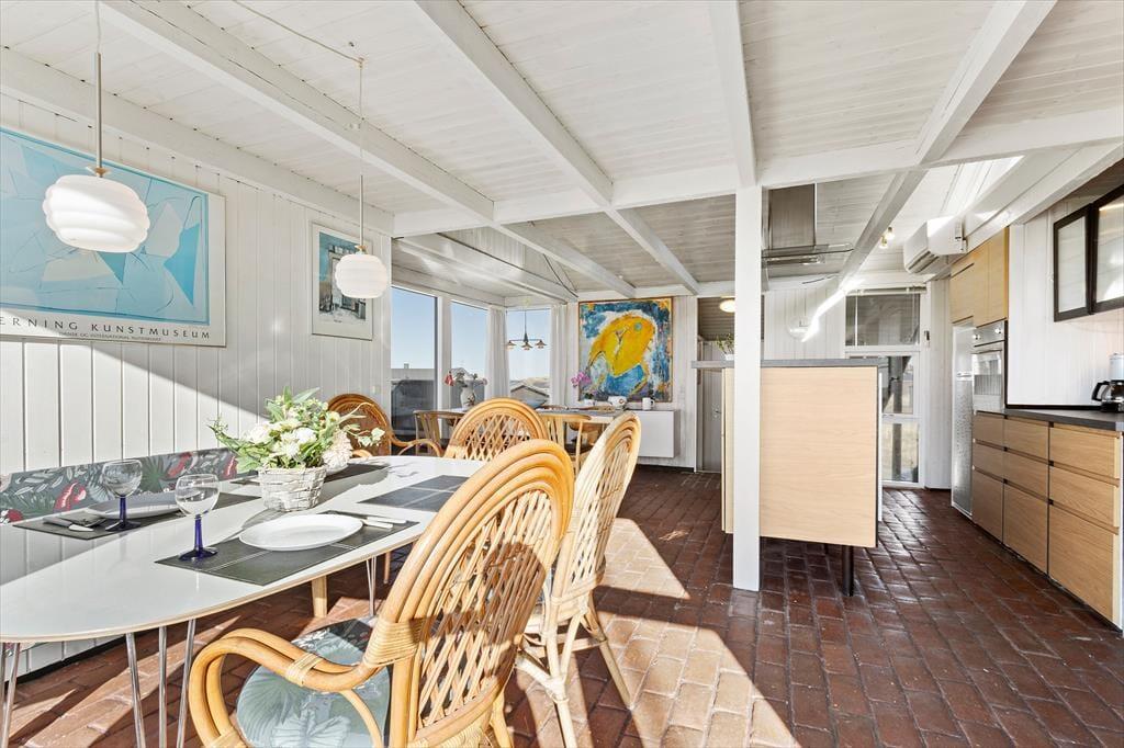 På Jomfrubakkerne 15 i Løkken finder du et sommerhus, der kombinerer moderne komfort med charmerende arkitektur og en fantastisk beliggenhed. Det stilfuldt indrettede hus byder på tre rummelige soveværelser og to badeværelser, hvoraf det ene er udstyret med både spabad og sauna – perfekt til afslapning efter en dag ved Vesterhavet. Køkkenet ligger i åben forbindelse med stuen, hvilket skaber et lyst og indbydende opholdsområde, hvor familien kan samles om madlavning, hyggesnak og afslapning. Fra de store vinduespartier kan du nyde et betagende kig ud over området, mens brændeovnens varme skaber den helt rigtige feriestemning.