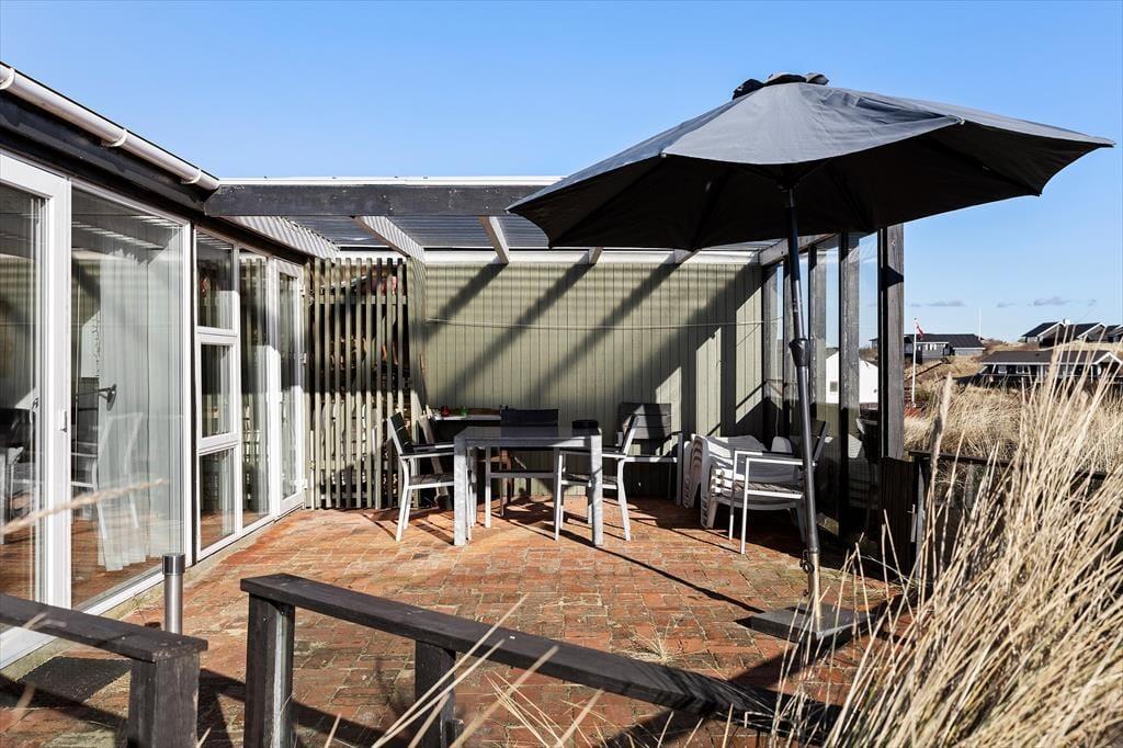Sommerhuset er omgivet af flere lækre terrasser, hvor du kan finde både sol og læ dagen igennem. Terrasserne er indrettet med hyggekroge og havemøbler, der inviterer til afslapning med en kop kaffe eller et glas vin, mens du betragter områdets smukke landskab. På de lune sommeraftener kan grillen tændes, og dagens oplevelser kan vendes over en middag under åben himmel. Den naturskønne grund og de nærliggende stier gør det let at lade børnene lege frit eller tage på små eventyr i det fredelige sommerhusområde.