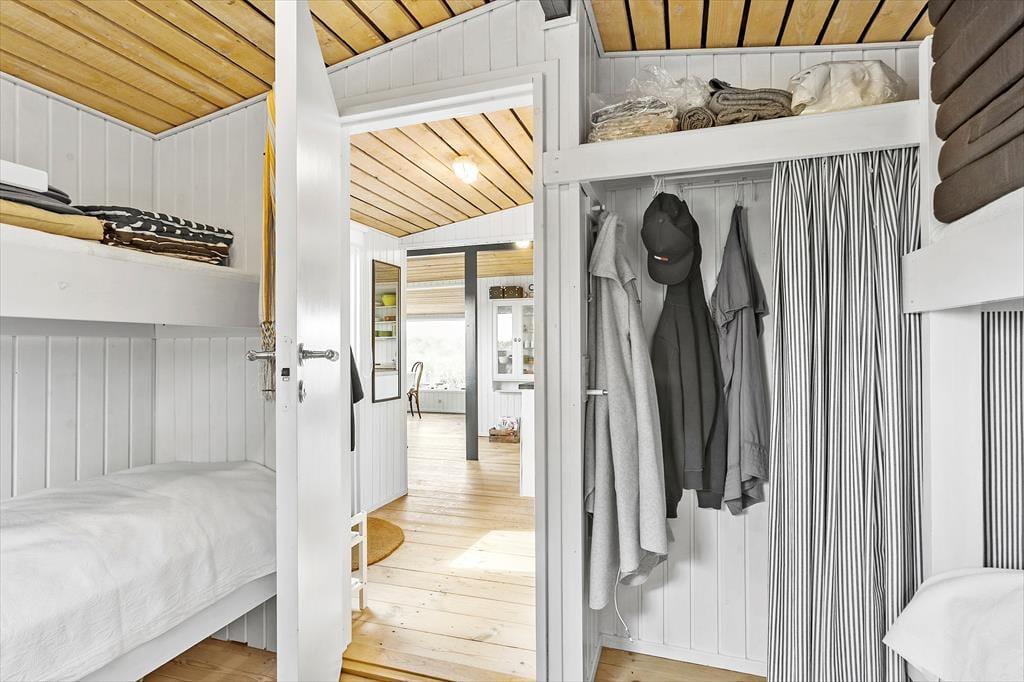 Drømmer du om en ferie tæt på Vesterhavet og med en ægte sommerhusstemning? Så er sommerhuset på Bentevej 20 i Løkken lige noget for dig. Her kan du mærke roen sænke sig, når du træder indenfor i det autentiske træhus, som er indrettet med kærlighed og sans for detaljerne. Sommerhuset ligger tæt på de bølgende klitter og den smukke sandstrand, så du har de bedste rammer for en afslappende ferie med familie eller venner.