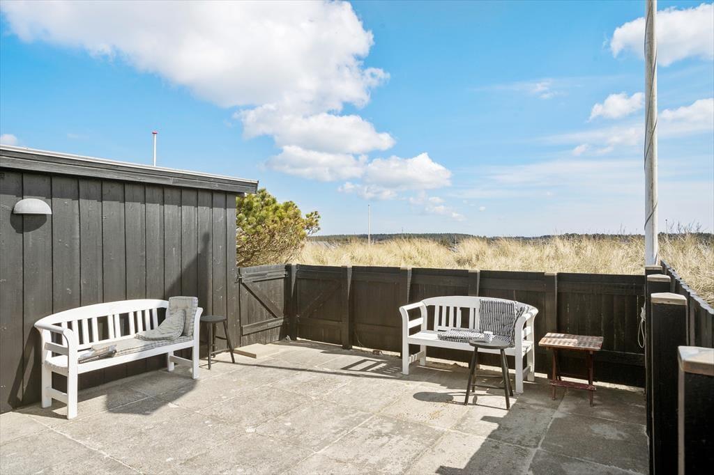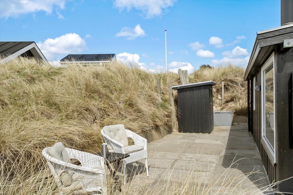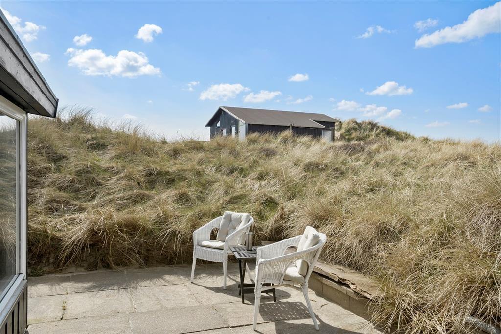 Udenfor er der flere dejlige kroge, hvor du kan nyde livet i solen eller finde skygge på de varme sommerdage. Fra terrassen kan du skimte klitterne, og havets brusen kan høres i baggrunden – en påmindelse om, hvor tæt på naturen du er her. På de skønne terrasser kan du slappe af med en god bog, lade børnene lege i haven, eller samle alle til en grillaften, mens solen går ned over det nordjyske landskab. Her på Bentevej er der plads til både at være aktiv og tage det helt roligt – præcis som en ferie ved Vesterhavet skal være.