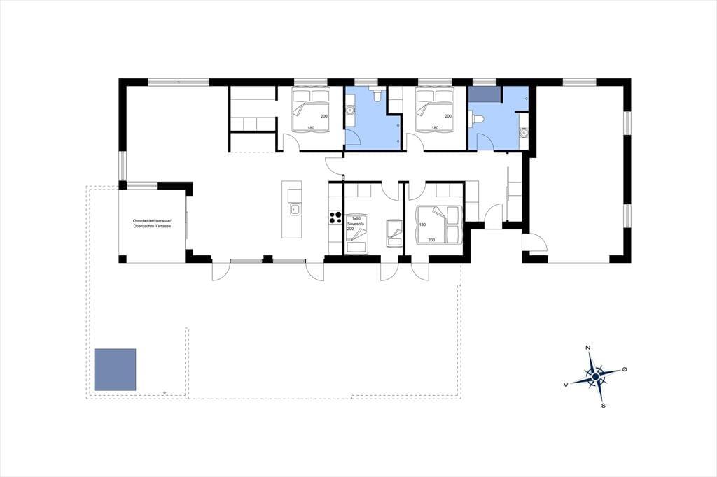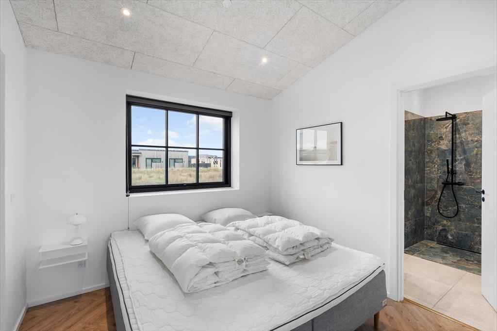 Når du træder ind i dette nyere kvalitetshus, bliver du mødt af et lyst og åbent opholdsmiljø, hvor både stil og funktionalitet er i højsædet. Køkkenet er i åben forbindelse med stuen, hvilket gør det perfekt til fælles madlavning og hyggelige stunder. Her kan du tilberede lækre måltider og samtidig deltage i samtalerne i den rummelige stue, der byder på et fantastisk lysindfald fra de store vinduer. I stuen finder du også en indbydende alkove, hvor du kan slappe af med en god bog eller bare nyde udsigten. Sommerhuset har tre smagfuldt indrettede soveværelser og to moderne badeværelser, så der er rigelig plads til, at familien kan slappe af og nyde tiden sammen. De to badeværelser tilbyder både komfort og funktionalitet, så du nemt kan starte dagen i ro og mag.