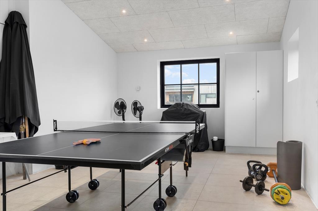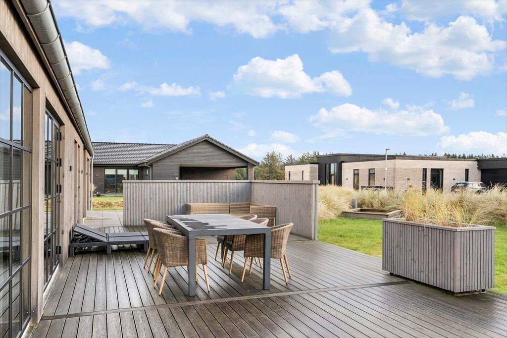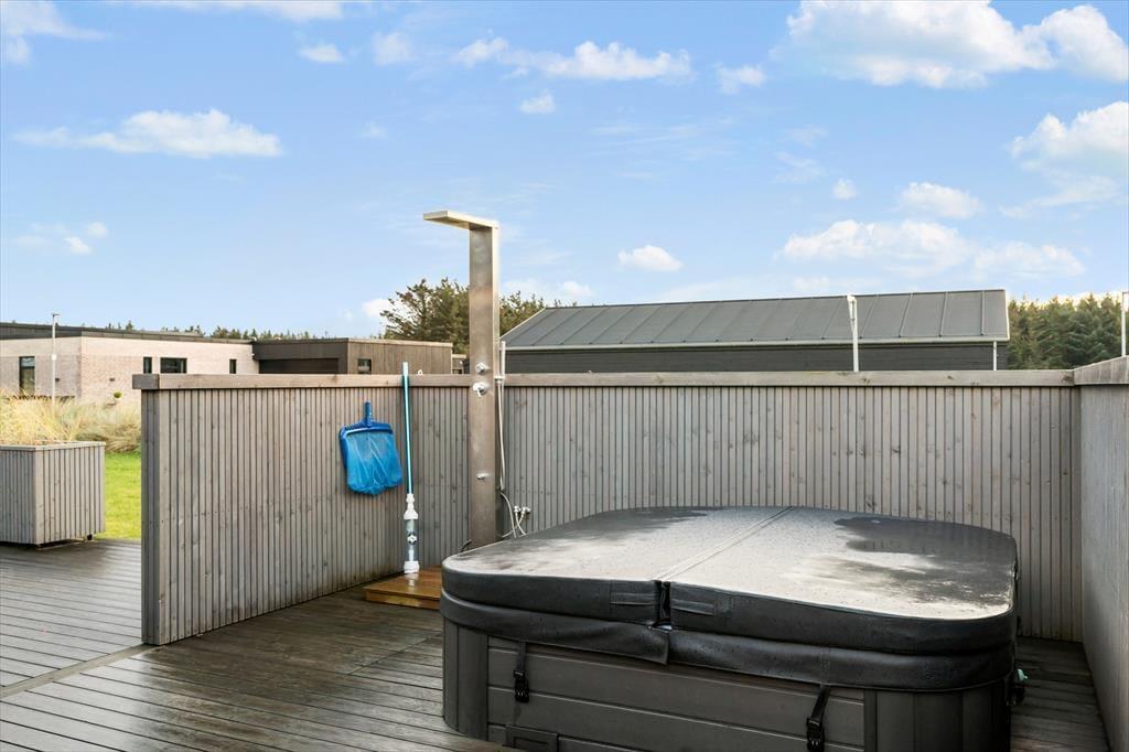 Fra stuen og køkkenet er der direkte adgang til de store, lækre terrasser, som er ideelle til at nyde solen og den friske luft. Her er masser af plads til både afslapning og hyggelige måltider under åben himmel. En af de ekstra luksuriøse faciliteter, du kan se frem til, er udespaet, som giver dig muligheden for at forkæle dig selv og slappe helt af efter en dag fyldt med aktiviteter. Sommerhusets beliggenhed giver også en enestående mulighed for at opleve naturen tæt på – terrasserne er perfekt afskærmede, så du kan nyde både sol og skygge. For familier med børn er der også plads til leg på grunden, og hvis du er til lidt ekstra underholdning, har sommerhuset et aktivitetsrum i garagen, hvor både børn og voksne kan hygge sig med spil og aktiviteter.