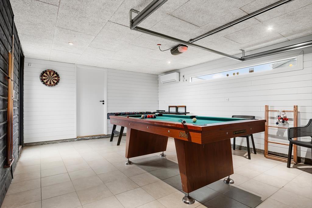 Indenfor møder du et stilrent og moderne hus med åbne rum og masser af lys. De store vinduer giver et flot lysindfald og åbner op til de smukke omgivelser, som kan nydes fra både stuen og køkkenet. Her er der plads til samvær og hygge, når I tilbereder lækre måltider i det veludstyrede køkken, der har alt, hvad du behøver for at lave mad med lokale råvarer. Sommerhuset rummer tre gode soveværelser og to luksuriøse badeværelser, så alle kan få deres egen plads til afslapning og komfort. Og hvis I har lyst til at aktivere jer, har I et aktivitetsrum i annekset, hvor I kan spille, hygge og more jer sammen.