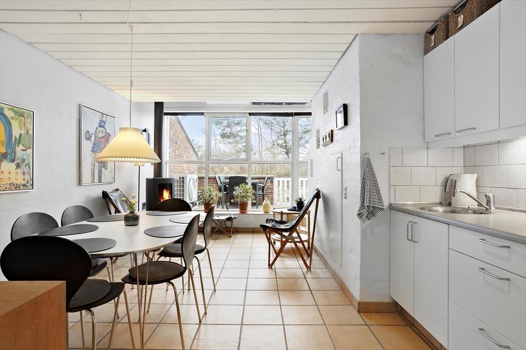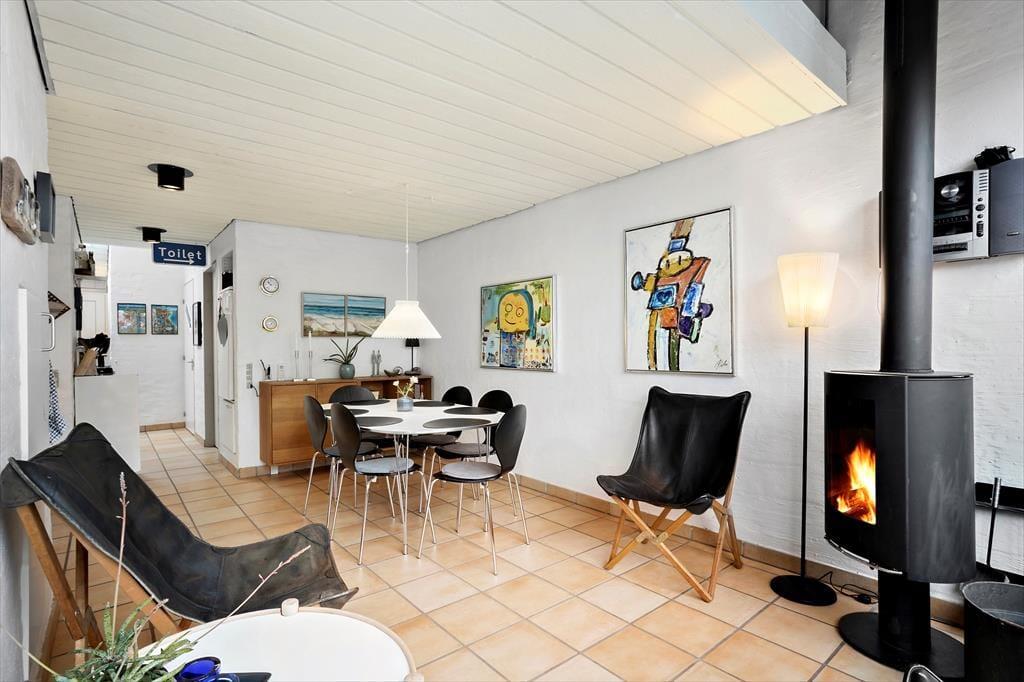 Når du træder indenfor i dette lyse og indbydende feriehus, bliver du mødt af et åbent og rummeligt opholdsmiljø, der både inviterer til hygge og samvær. Køkkenet er åbent og moderne, og her kan du tilberede måltider samtidig med, at du kan være en del af samtalen i stuen. De store vinduespartier giver et fantastisk lysindfald, og skaber en dejlig, lys atmosfære hele dagen. I stuen kan du slappe af foran brændeovnen, som skaber den perfekte stemning til en hyggelig aften. Sommerhuset rummer tre gode værelser, som indbyder til ro og afslapning, og med et badeværelse og et ekstra toilet er der god plads til hele familien.